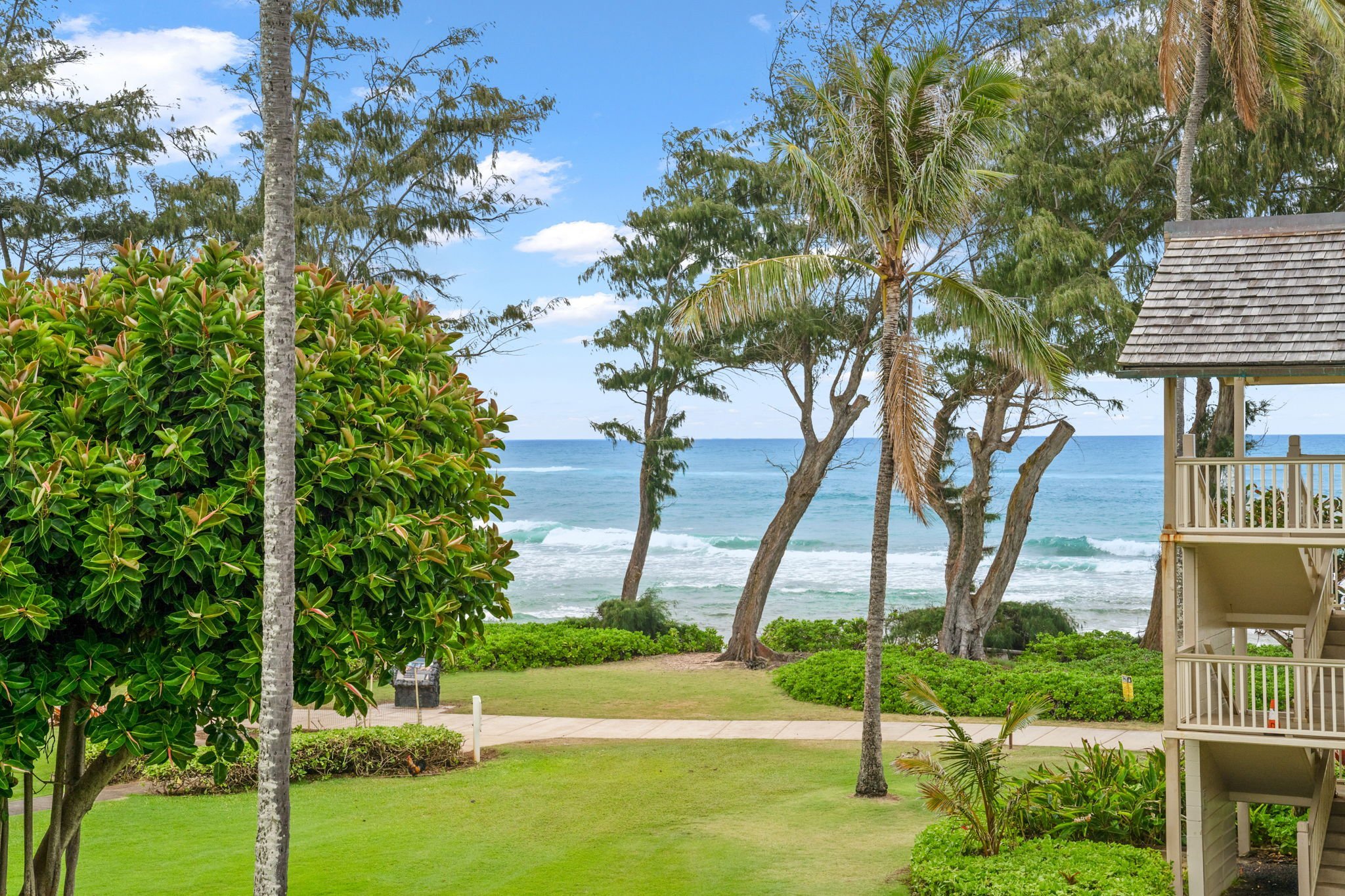 PRICED TO SELL! This won't last! It's easy to see why unit 319 in the highly coveted "Hawaii Wing" is such a highly successful vacation rental. Once you step inside you won't want to leave! Kick off your slippers and relax on the lanai with gorgeous ocean views. Enjoy all the convenience of being located just steps away from the onsite pool, jacuzzi, BBQs, and Tiki Bar, while being able to step away from it all and enjoy the peaceful tranquillity of facing the tropical garden of the largest green space in the complex. Perfectly situated to pick up the cool trade winds coming right off the Pacific. Being on the top floor has its perks as well, THE VIEWS, no noise from upstairs neighbors or ever having to worry about a leak from a unit above, keeps this penthouse suite in high demand.