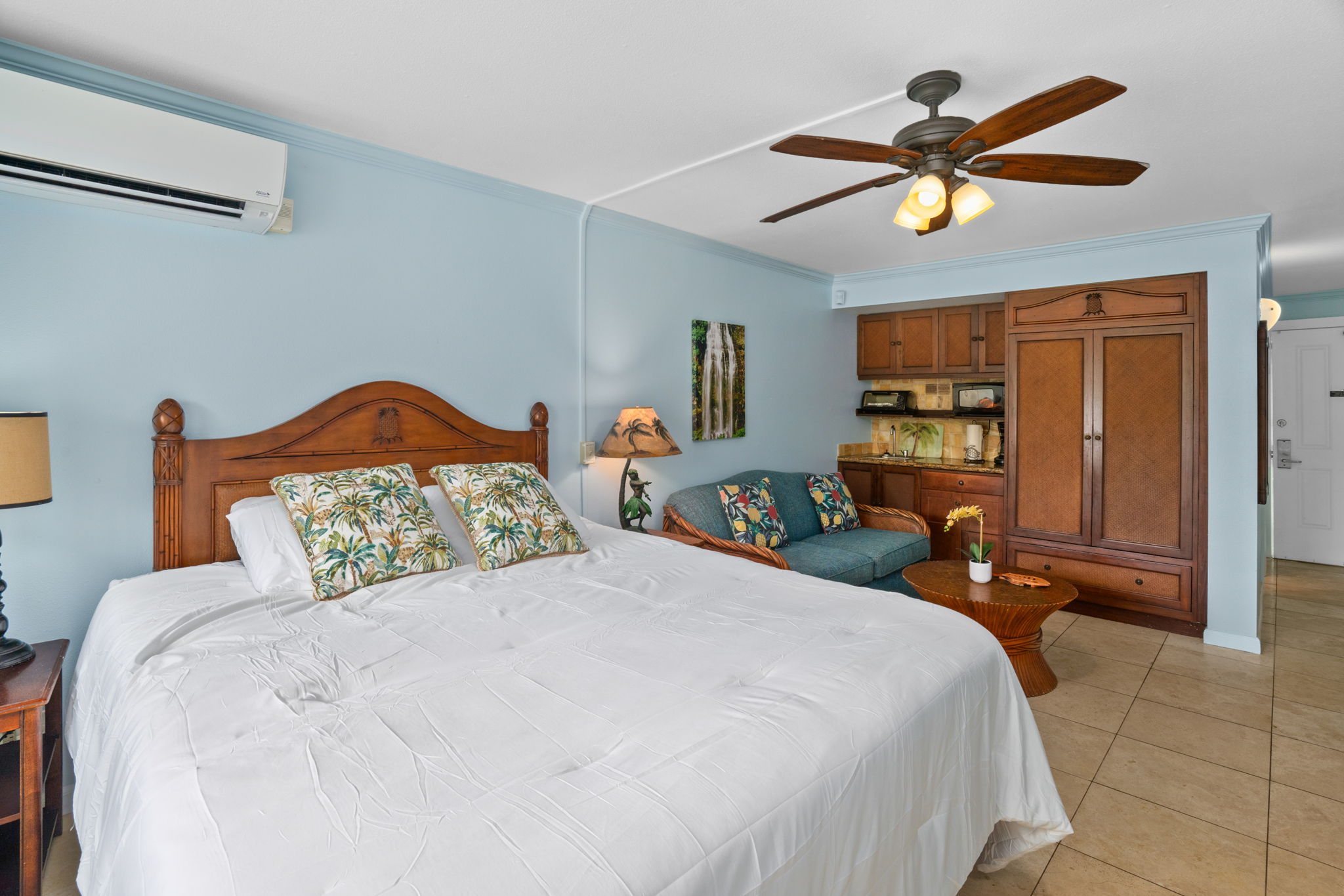 Being sold fully turn key, you can hit the ground running with this unit seamlessly and stress free. Stretch out in your comfortable Cal King Bed with memory foam topper or the newly reupholstered sofa-bed. The kitchenette comes equipped with a microwave, toaster oven, small freezer/refrigerator, coffee maker, and fully stocked with dishware.