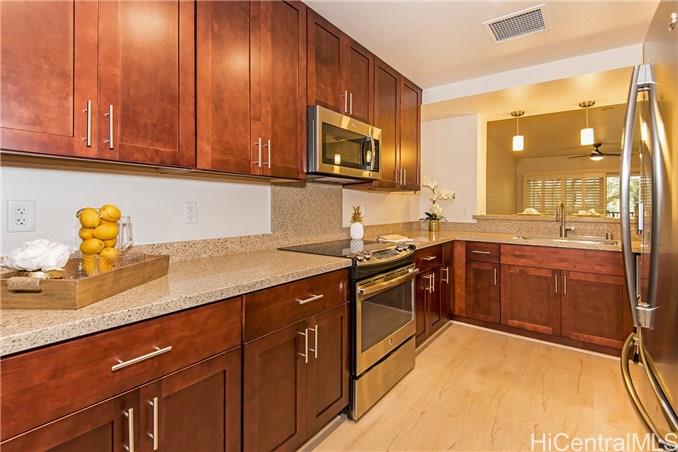 New price!! Aggressively priced to sell now! Don't miss out on this brand new unit! This completely move in ready unit boasts 3 bedrooms/2 full baths, wood floors through out, a fabulous kitchen complete with quartz counter tops, a breakfast bar and stainless steel appliances, spacious bedrooms rooms, 2 lanais and 2 covered parking stalls. Situated in a convenient location in the building close to the elevator. Turn key, nothing to do but move right in!