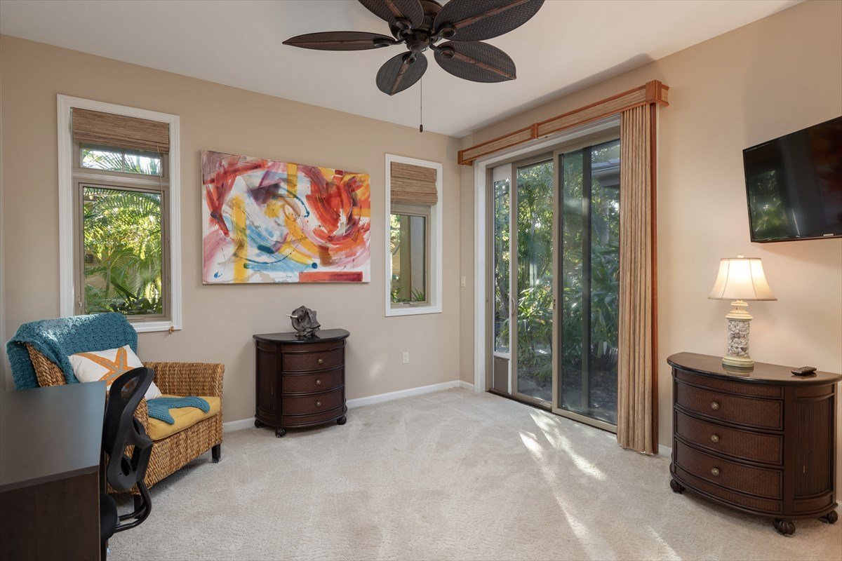 Lowest-priced offering in Ka Milo!!! Ka Milo 103 is a popular SINGLE-STORY "Honua A" plan with golf views in a tropical garden setting. It features beautiful granite countertops, stainless steel appliances, luxury ceiling fans, pocket doors, large master bath with a soaking tub, coconut flooring, brand new carpet in bedrooms, a lanai with lots of privacy. Ka Milo owners enjoy a large amenity center with a gathering hale, fitness room, family pool, two hot tubs and swimming pools on 2 acres. The Shops at Mauna Lani are near-by, offering casual and fine restaurants, a grocery store, art galleries and boutiques. The Mauna Lani homeowners can receive beach club cards for the Mauna Lani Beach Club access via the master association. Special rates at Mauna Lani Resort's North and South golf courses are provided by the Advantage Program. Sold furnished per inventory. Art is excluded.