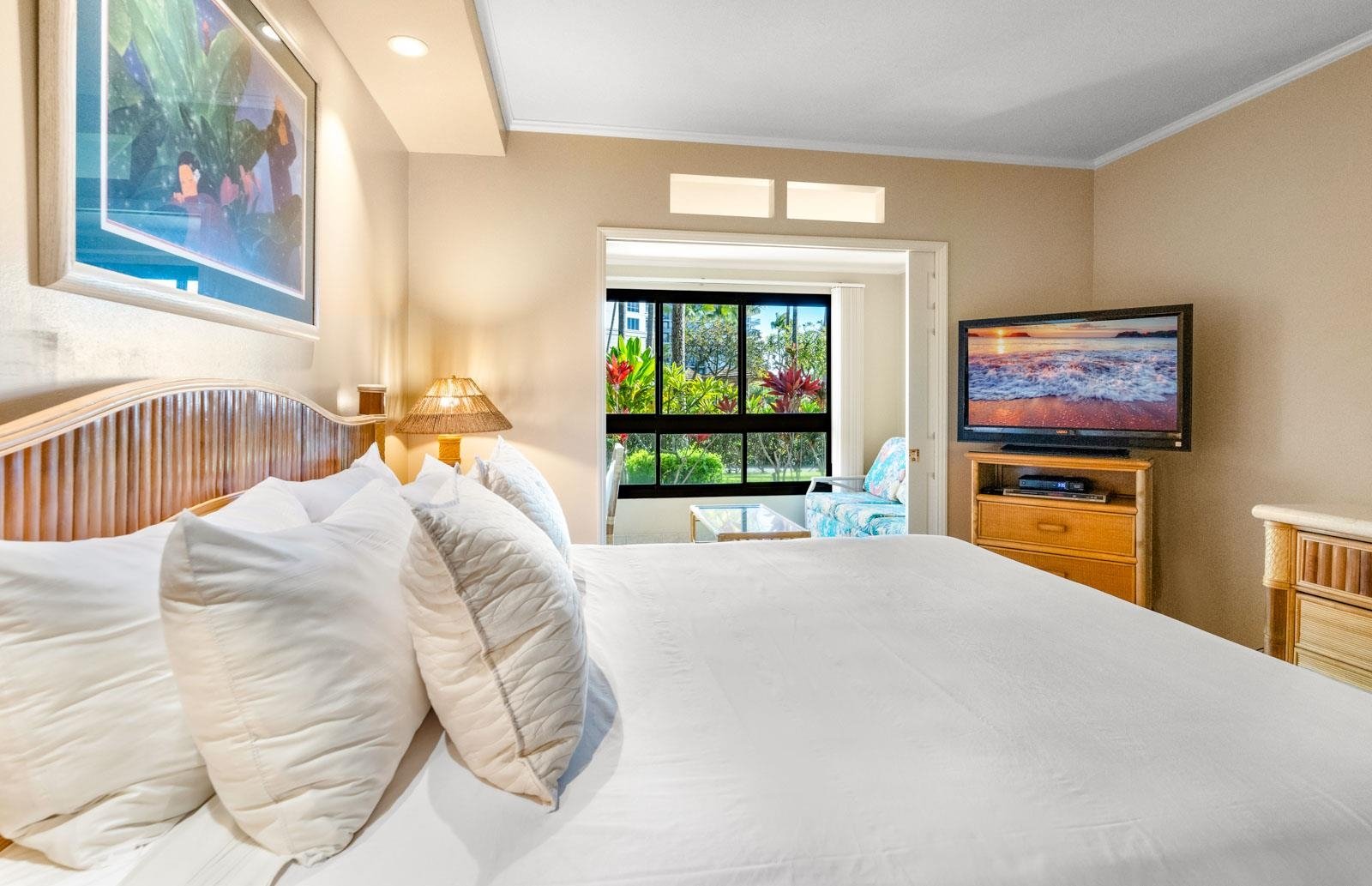 Welcome to Kaanapali Alii 3-102, a rarely available ground floor unit in the hotel resort zone. This exquisite vacation rental offers 1-bedroom 2-baths plus a den that is being utilized as a second sleeping area. This ground floor location is the third unit back from the oceanfront offering an ocean view toward the neighbor island of Lana'i. Unit 3-102 offers not only a prime location but also an unparalleled experience of island living featuring a private lanai with direct access onto the tranquil resort grounds and easy access to the sandy beachfront and the mesmerizing sight of the Pacific Ocean. You don't have to ride an elevator to enjoy the outdoors. Just off the lanai is a beautiful grassy lawn offering extra outdoor play area. Unique corner location allows the ease of unloading luggage and groceries. Unit is impeccably furnished and features tile flooring throughout, granite countertops and custom cabinetry. Resort amenities include two beachfront swimming pools and BBQ area, a fitness center, tennis, concierge. Conveniently located close to the shops and restaurants of Whalers Village Shopping Center, beach recreation activities, and amazing snorkeling at nearby Black Rock.