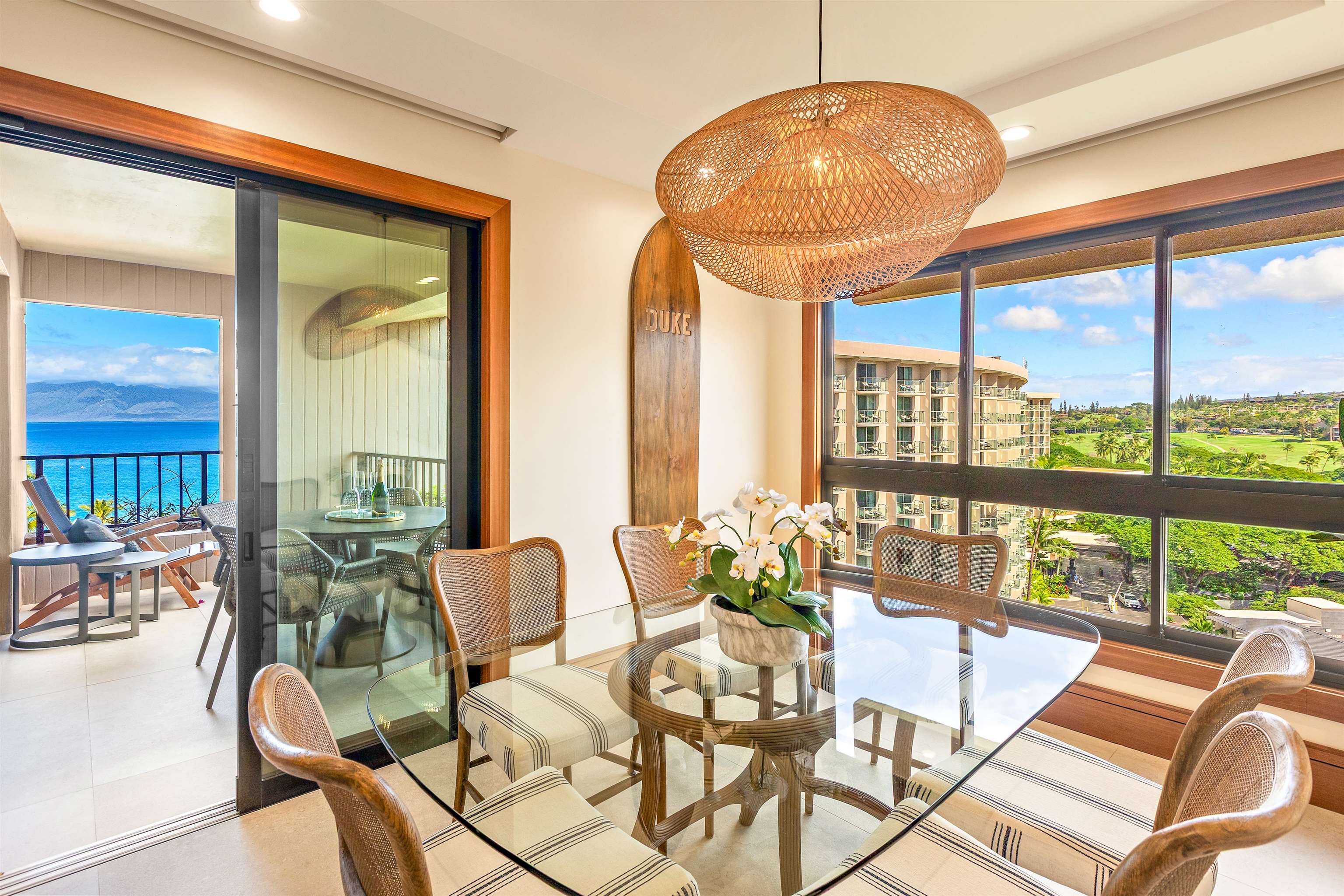 Welcome to Ka’anapali Ali’i, Unit 2-1002 where meticulous design meets natural beauty. Located on the 10th floor, this masterfully reimagined residence features a one-bedroom, two-bathroom retreat plus a versatile den. Following an extensive 2022 renovation, this home offers a visual trifecta of the Pacific Ocean, the lush fairways of the Royal Kaanapali Golf Course, and the majestic West Maui Mountains. Every inch of this interior has been curated to balance modern luxury with a relaxed "beach house" ambiance in an uncompromising commitment to quality. Oversized porcelain tile flooring flows seamlessly throughout, illuminated by the artistic highlights of a custom designed lighting package. Handcrafted Sapele wood cabinetry and millwork provide a warm, organic foundation, complemented by custom louvered doors and matching trim. As a stunning centerpiece, the kitchen incorporates Taj Mahal granite with a dramatic waterfall slab design. This premium stone extends into the bathrooms, where chiseled stone sinks accent gracefully elongated vanities. Offered fully furnished, this coastal chic residence enjoys a sophisticated blend of high-end pieces from Serena & Lily, Pottery Barn, and Arhaus, ensuring that the home is as comfortable as it is photogenic. Situated directly on the sands of world-famous Ka‘anapali Beach, the Ka‘anapali Ali‘i Resort continues to set the gold standard for luxury condominium living in West Maui.