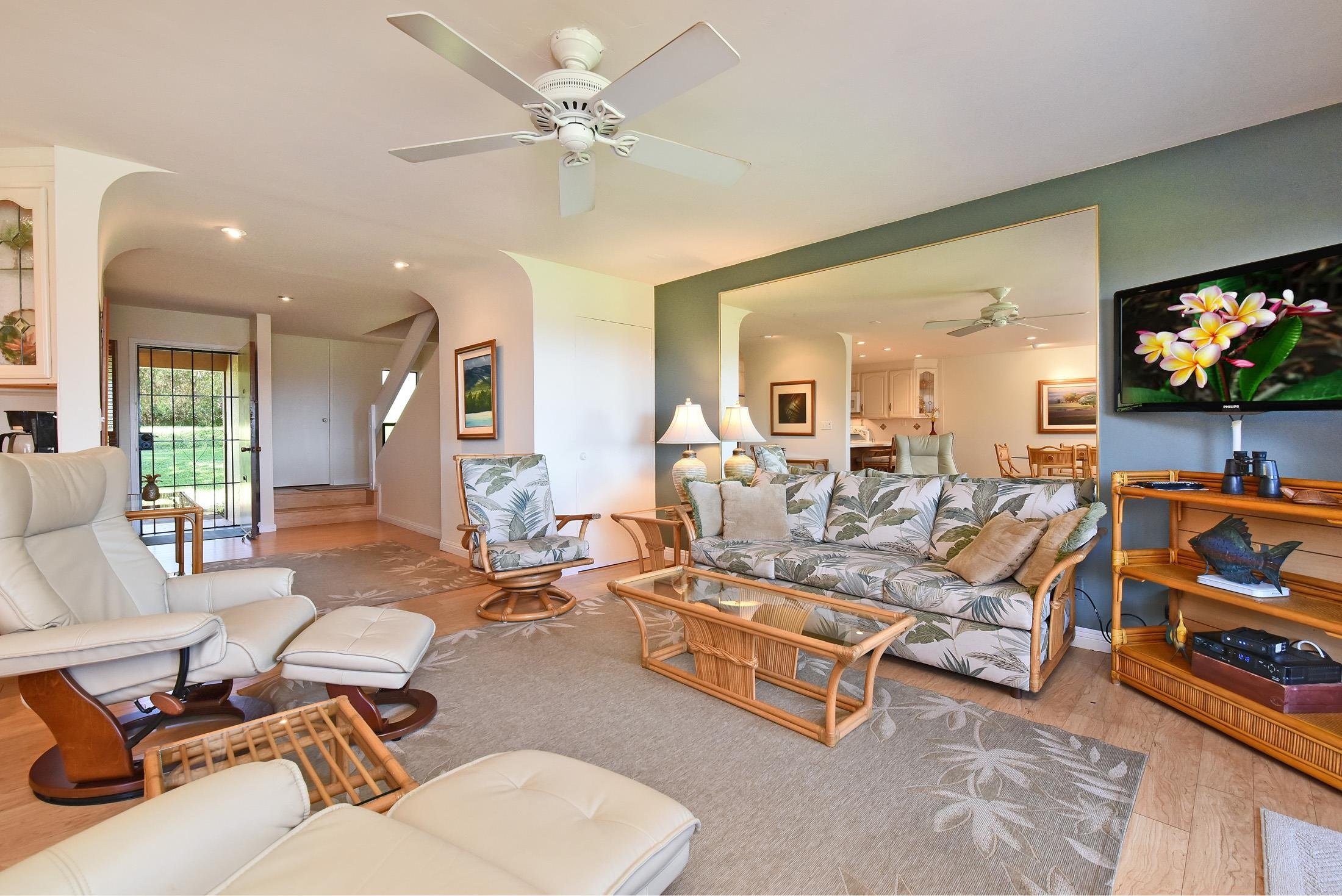 Can you say, 3 Bedroom 2.5 Bath Townhome in the heart of Kaanapali? Legal vacation rental, located on the Royal Kaanapali Golf Course. This unit won’t last, so please make note of the best opportunity of this season. The sellers have loved it since 1999, and have relished coming home for all these years. No buildings or parking lots in front of the unit, simply phenomenal views and location. The hook which caught the sellers originally, was the drop-dead gorgeous Ocean and Outer Islands view from the Living Room, Kitchen, Dining Room, and the Master Suite, which is located directly above the downstairs living area. One of the nicest remodels in this floor plan in the past few years. The improvements include a renovated kitchen, walls, pop-corn ceiling scraped, led soffit lighting, under stair storage, Master Bath transformed to a delicious spa, with double shower, double sinks. The flooring is wood, tile, & laminate. Second bath upstairs has also been renovated. The cast iron pipes have been replaced. The laundry room also serves as the half bath, on the ground floor. Kaanapali Plantation is located on the beautiful hillside above the South Kaanapali Resort. Impeccable vistas towards the Pineapple Isle of Lanais, and the Friendly Isle of Molokai across the crystal-clear Pacific Lapping on to the sandy shore below. The front row units sit directly on the Royal Kaanapali Golf Course, 14th hole. The 62 units on 10 acres feature, 1 bed 2 bath, 2 bed 2 bath, 3 bed 2.5 bath, and 3 bed 3 bath units. The site lends to preserving the ocean views, while enjoying lush, mature tropical trees and flowers throughout the complex. Well placed swimming pool, tennis court, and shuffle boards near the Manager’s Office, rest rooms, meeting room, and BBQ area. Very pristine and comforting environment. A 3-year assessment to replenish the reserve in the amount of $333.33 per month will be in place until March 2023. The maintenance fee of $1,255.19 includes the assessment. Unit has a long -term tenant, so generally 48- hour notice to show. Sellers want to use it for 2 weeks in 2022. This unit had been a Vacation Rental for many years. Wonderful opportunity to someone who wants vacation rental income, and doesn’t have to deal with rising coastal water levels. MUST SEE TO APPRECIATE!!