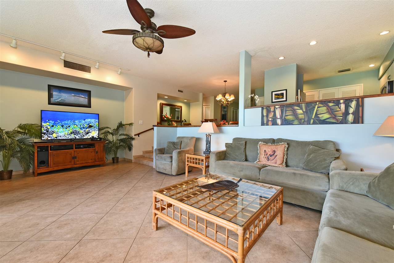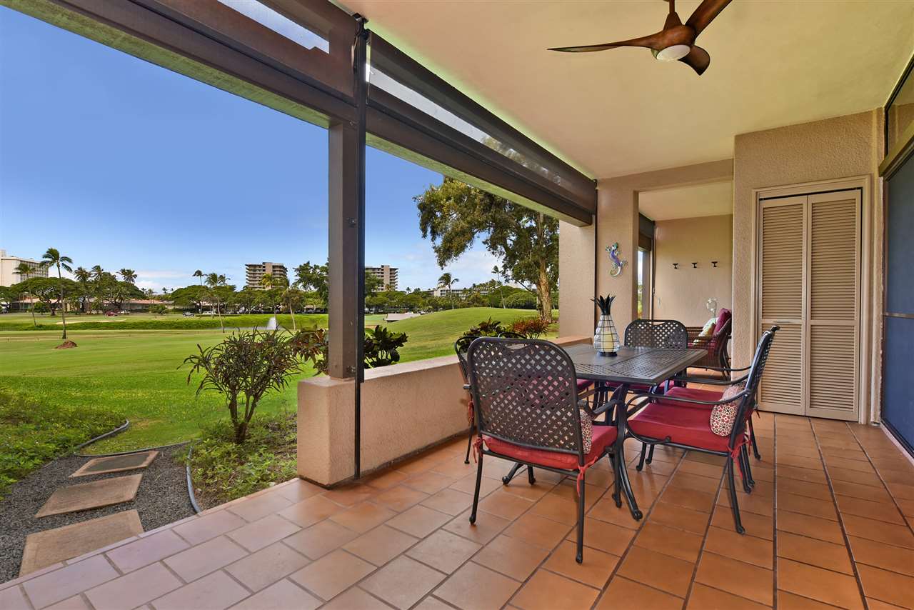 If you are ready for Maui, Maui is ready for you!! Kaanapali Resort and Golf Course views from this spacious 2 bedroom 2 bath unit with approximately 1,534 S.F. of living area and a huge lanai with 495 S.F. Floor plan is single level with the master bedroom and bath on the west side and the guest bedroom and bath on the east side. In this gated community, there is a beautiful heated pool and spa area, two hard-surface tennis courts in the fully-lighted tennis facility, all only steps from your front door. Walk to the golf course or Whalers Village and Kaanapali Beach for fine dining, shopping or a variety of beach activities. This is an upgraded unit with beautiful furnishings all included and the Electric solar shades on the lanai.