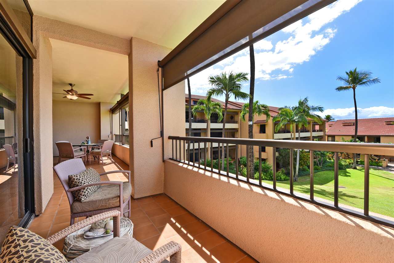 The gated community of Kaanapali Royal consists of 2BR floor plans that have interiors of 1500 to 1800 Sq Ft with 2 to 3 lanais that add 360 to 410 Sq Ft.