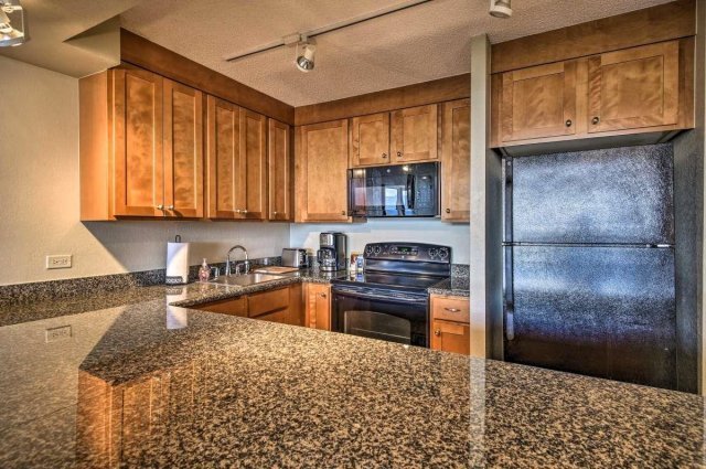 Welcome to Kaanapali Shores #747! Situated on the interior of the building overlooking the pools and ocean, this unit is beautifully decorated from head to toe. The kitchen features granite slab counters, nice appliances and tile floors. The living room is open and well appointed. K Shores is a destination resort with repeat visitors year after year. The ocean front pool is adjacent to the Beach Club Restaurant & Bar with pool side service for those tropical mai tais. Units at K Shores make wonderful vacation rental units and second homes!