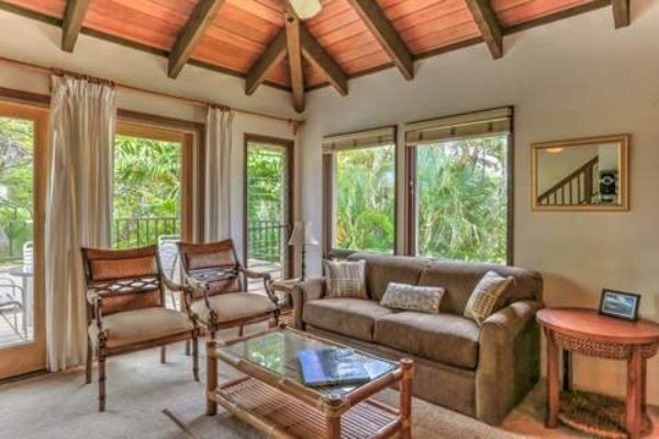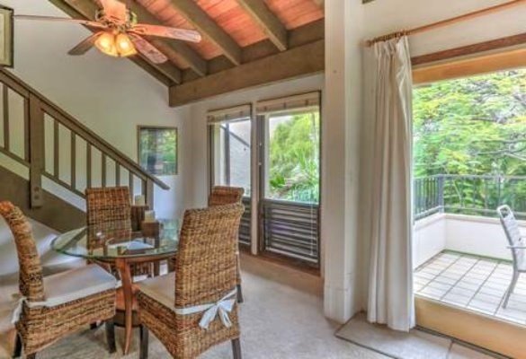 Private, quiet, corner unit with open beam ceiling, 2 lanais, and a loft. The loft has 2 twin beds so there is plenty of room for others. The master bedroom has an AC unit. Walk to the beach! Well maintained, tropically landscaped grounds, this fully furnished unit overlooks the Kahala pool. There is new furniture in dining room/new sleeper couch/chairs in living room. This condo can be used as a vacation rental or live here full time with your allowed pet. Yes this is one of the only pet friendly condos in Poipu. Part of the Poipu Kai community which has access to pools, tennis courts, Jacuzzi, on site restaurant, and close to golf.