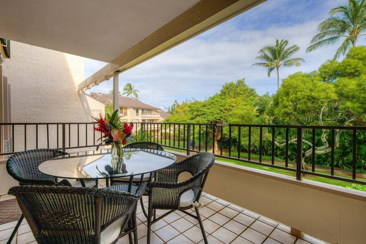 Charming, clean and peaceful. Large one bedroom condo at Kahala at Poipu Kai with large lanai overlooking the green belt. The generous living area flows out to the oversized lanai, giving this condo a very liveable feel. The current owners made this their full time residence for a time. This property has been very lightly rented, and it shows. Classic Hawaiiana decor is found throughout the condo, including wahine and kane lamps, barkcloth upholstery and vintage artwork on the walls. Recent upgrades & improvements include: - New refrigerator - New disposal - New dishwasher - New water heater - New toilet - Portable air conditioner - Washer/dryer replaced in 2016 The bathroom features a glass enclosed shower over a soaking tub and a double vanity. The bedroom offers a large walk-in closet. A newer stacked washer and dryer is also in the unit. The large enclosed pool area with covered dining area and BBQ is reserved just for Kahala owners and guests, and is conveniently located just around the corner from the condo. Kahala is part of the Poipu Kai Resort Association, which includes multiple properties. Owners and their guests have access to tennis courts, large pool areas, spas and more, all connected by walking paths that lead Poipu Beach Park, the Hyatt and Shipwrecks Beach. Poipu Kai offers a delightful lifestyle that will have you enjoying the best of Poipu.