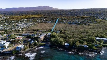 The Kahaluu Reef sits across the street from the ocean, only about 50 yards from the waves. This is a quieter part of Kona, the property having nothing but undeveloped land to the east, and no next door neighbor to the north.