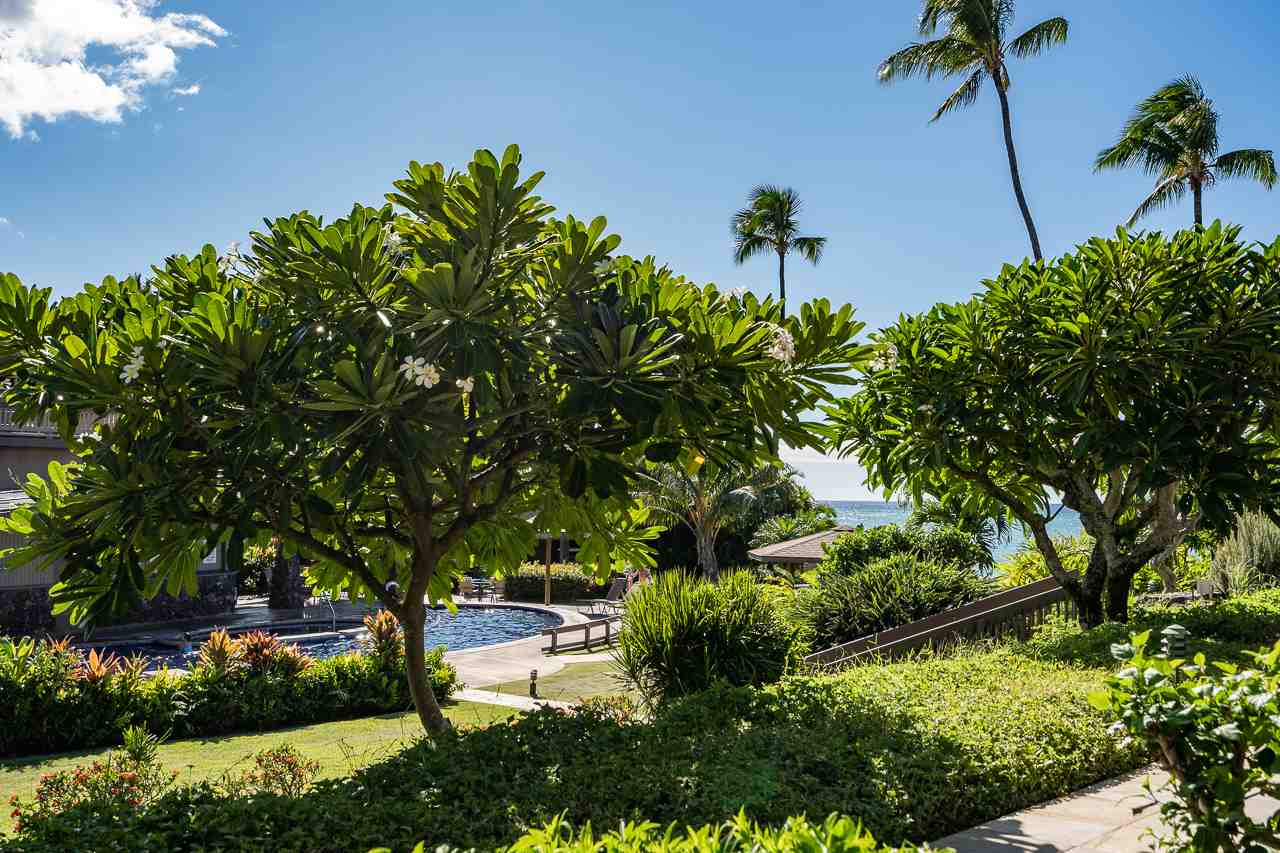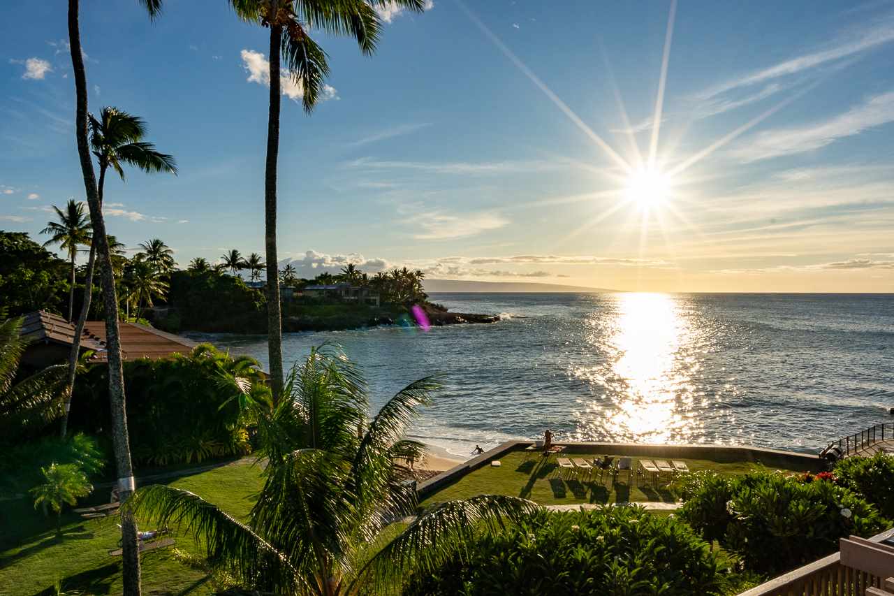 This is arguably West Maui’s best beachfront, ocean view value for a one bedroom vacation rentable property. This excellent vacation rental unit is simply gorgeous with dozens of unique features that you will have to see for yourself. Kahana Sunset is a quiet piece of paradise with lush, tropical foliage and lounging areas. There is easy access to your secluded beach, a great spot for snorkeling with turtles. The seawalls have been recently completed as well. C2C’s 96 square foot ocean view covered lanai opens onto the grounds and pool area. It’s bordered by a row of fragrant plumeria trees. It is the perfect place to ease into your day taking in the ocean and outer island view with a cup of coffee or finish your day relaxing and watching the sunset reflect across the sea anticipating a green flash. The interior has recently been painted. The large living room is open and has a queen sofa sleeper. The floors are Travertine throughout and you’ll love the AC system that is deftly engineered through both the living area and bedroom. The kitchen is beautiful and perfectly situated so that the chef can be fully included in gatherings with family and friends in your amazing living space. It has beautiful custom granite countertops, stainless steel appliances, quality custom wood cabinetry and an abundance of overhead lighting. The oversized bedroom easily accommodates a king size bed and still has plenty of room to spare. The space is nice and bright with a huge window facing the lanai and the plumeria trees. Imagine going to bed with the gentle trade winds blowing in the smell of plumeria flowers. There is a walk-in closet outfitted with custom built wooden drawers. The bathroom has a walk-in shower and is separated from the vanity. On the beautiful grounds there are several BBQ areas and gathering spaces. Kahana Sunset is also in the perfect location; only about 5 minutes away from the Kapalua resort area with world-class golf courses and 10 minutes away from world-famous Kaanapali Beach.