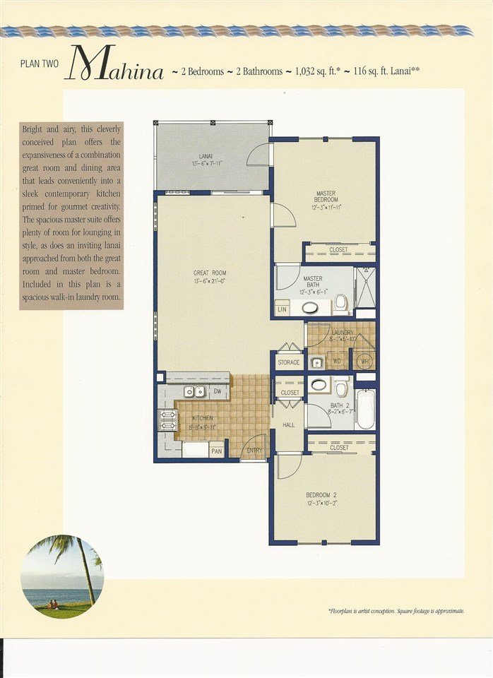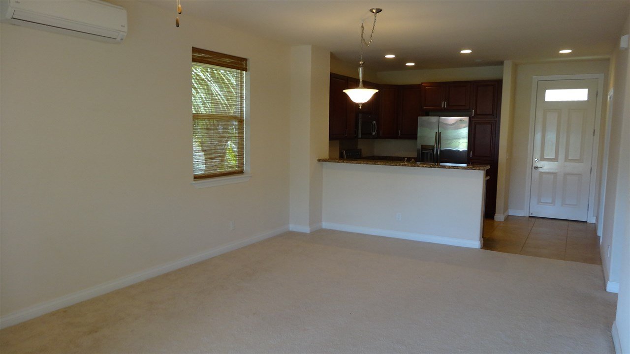 One of Kihei's newer condominium complexes, Kai Ani Village offers just about everything. This "Mahina" floor plan is a second floor private end-unit, 1032 square foot, 2 bedroom, 2 bath condo that features granite counter-tops, maple cabinets, stainless steel appliances, brushed nickel hardware, a separate laundry room, tile and carpeted floors, 9’ high ceilings, new 3-zone mini-split AC, insulated walls, insulated windows and concrete sub-floors (to minimize sound transmission) as quality interior features. Common areas provide a beautiful infinity pool, spa, pool-side cabanas for privacy, large BBQ area, and lush tropical landscaping. There are two deeded parking spots included as well.