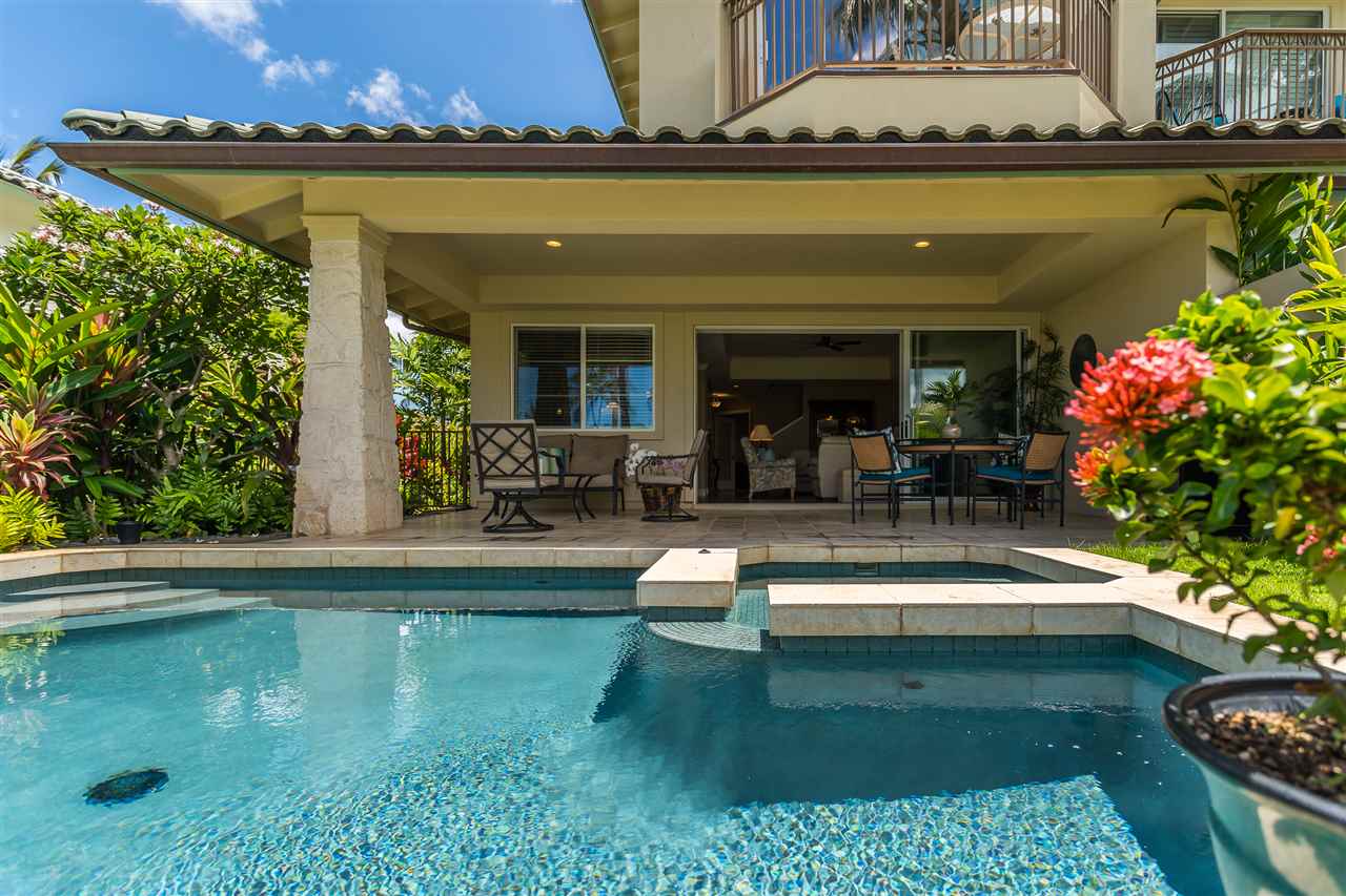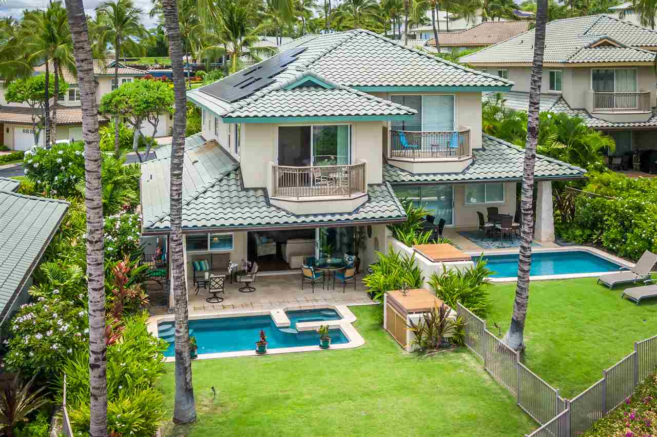 Your perfect Maui home is Kai Malu #13-B! WOW - 32 Panel Photovoltaic System with Battery Backup means low electric expense! It’s time to make your Maui dream come true! At Kai Malu #13-B your fabulous private pool and spa plus ocean views are always ready to enjoy in the large fenced yard. As you step inside the front door on the cool, tile entryway, you notice gleaming hardwood floors that extend throughout your spacious living and dining areas, leading to your large lanai in back. Your inviting kitchen features granite countertops and beautiful stainless GE appliances for those gatherings with loved ones. The 3 full bedrooms with 2.5 baths have been wonderfully designed with your lifestyle in mind. Your new Master suite upstairs features amazing ocean and outer island views, plus a gorgeous en suite bath and private lanai. The secondary suite upstairs will be perfect for your guests, with a full bath nearby. Downstairs, the flexible third bedroom can be office, bedroom or both. Having an attached two car garage means you can really have it all! The convenience of a carefree condo - that lives just like a private home. Kai Malu is very well-kept and features perhaps the most gorgeous community pool in Wailea, plus gym with new equipment and saunas at The Hale. Private, but so close to shopping, restaurants and world class beaches. Your dream home awaits, so don’t hesitate!