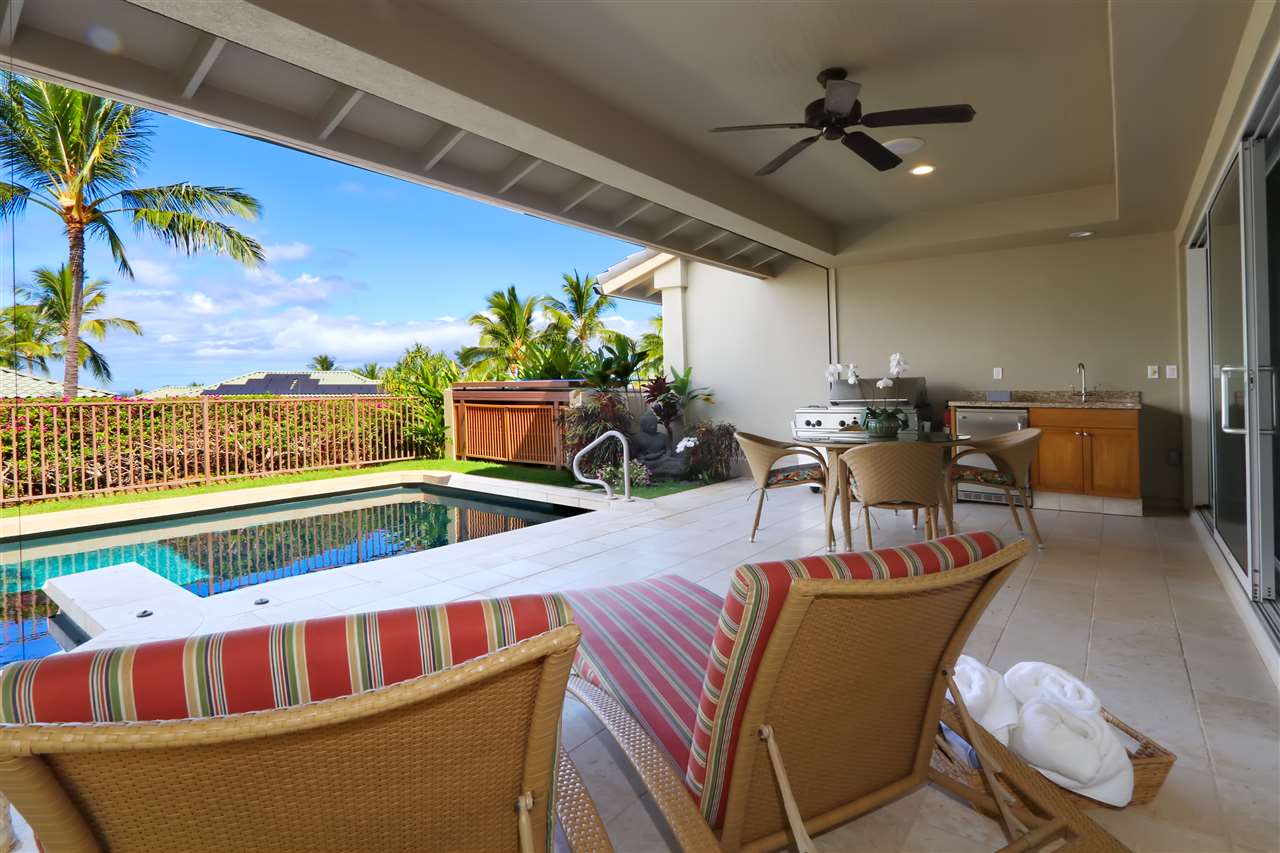 This is the Turnkey, Remodeled Maui Home you've been waiting for! Welcome to Kai Malu Wailea Villa 65A. Offered Furnished including New Flatscreen TVs and Artwork. This incredibly RARE offering is the only unit on the market on the top row with a Private Saline Pool & Spa, and one of only three in whole complex with endless pool swim against jets!!! (This is a $120,000 developer upgrade) Additional 2018 and Developer Upgrades include: Brazilian cherry hardwood staircase and floors, New Plantation Shutters throughout, New Energy Star Washer and Dryer, outside shower with massage shower head, lanai barbecue with mini fridge and wet bar sink, tumbled travertine flooring with extended Travertine tile lanai, Remote control retractable Awnings and Privacy shades in Master Bedroom and Lower level Lanai. 4-speed fans with LED lights, Trickler, water softener and Reverse Osmosis water filter in kitchen, Surround Sound Bose speaker system, Security system, French doors, Custom Built in Den bookshelves Phantom retractable screen door, Custom Built in closets. Ulupalakua and Ocean with Molokini views. And the best feature...the owned 24 Panel Photovoltaic Solar Electric System with just $19 a month electric bill. Kai Malu Wailea also features an amazing infinity pool with spa, gym, entertaining pavilion, and gated private location. Pets are welcome at Kai Malu too! Home is available as a second residence or full time home. Life on Maui is waiting!!! Seller to pay Buyers HOA fees through 2019!!!!