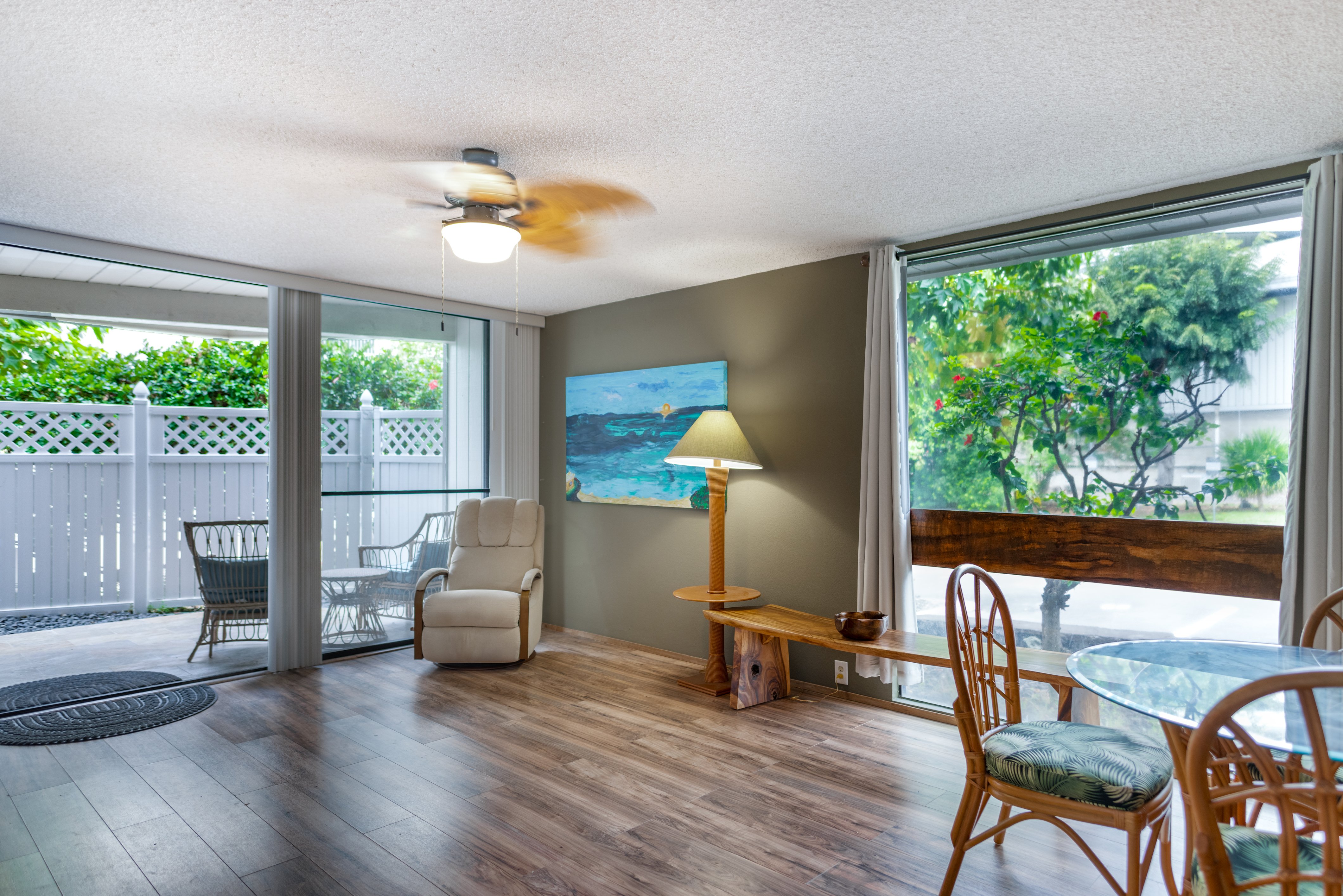 This 1Bd/1Ba condo has a private lanai with a gate right to your parking spot. There is also access to the local shopping center through a gate next to the parking spot.
