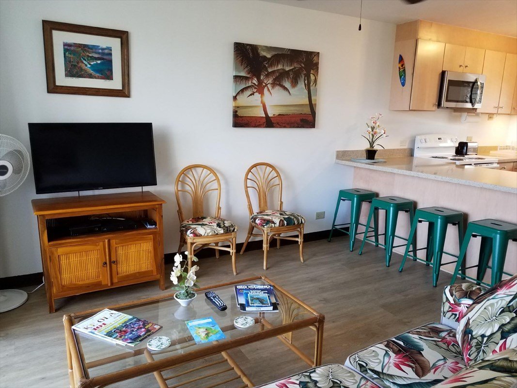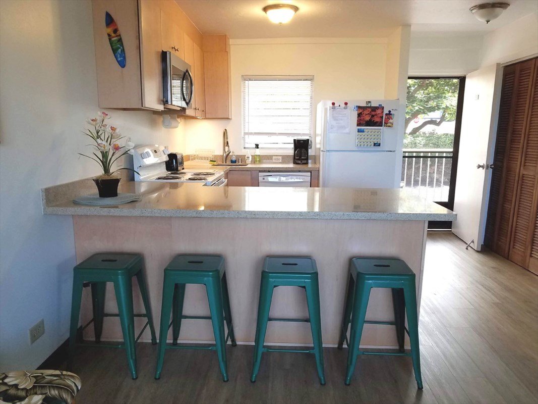 SELLER ACCEPTING BACKUPS! Updated turnkey-furnished condo in the heart of Kona with beautiful ocean views and ocean breezes. Remodeled kitchen and bath in 2019 with quartz countertops, soft close cabinets, new toilet and bath/shower. New microwave/hood, stove/oven and refrigerator. Life-proof vinyl flooring in kitchen and living area (2016) and carpet in the bedroom (2018). Sliding Shoji doors separate the bedroom from the living room and kitchen area. In-wall air conditioning unit available when needed. Lots of storage space with kitchen pantry closet and 2 full size closets. Kailua Village is a secure building with keys required to enter elevators and it has an onsite resident manager. A deeded parking space and a nearby garbage chute add to the convenience. The pet-friendly building includes a fenced, grassy area for dog walking. Of course, no complex would be complete without a pool and barbecue area, perfect for relaxing or entertaining friends. The secure laundry facility is located on the first floor and opens into the common garden area. This condo is a perfect vacation rental for investors or second home. Rental history available. With Alii Drive minutes away, you'll take advantage of the night life and restaurants along the shores of Kailua-Kona and within walking distance from beaches, specialty shops, eateries, gas stations, convenience stores, and more! Cable TV, trash and water are included in the HOA fee.