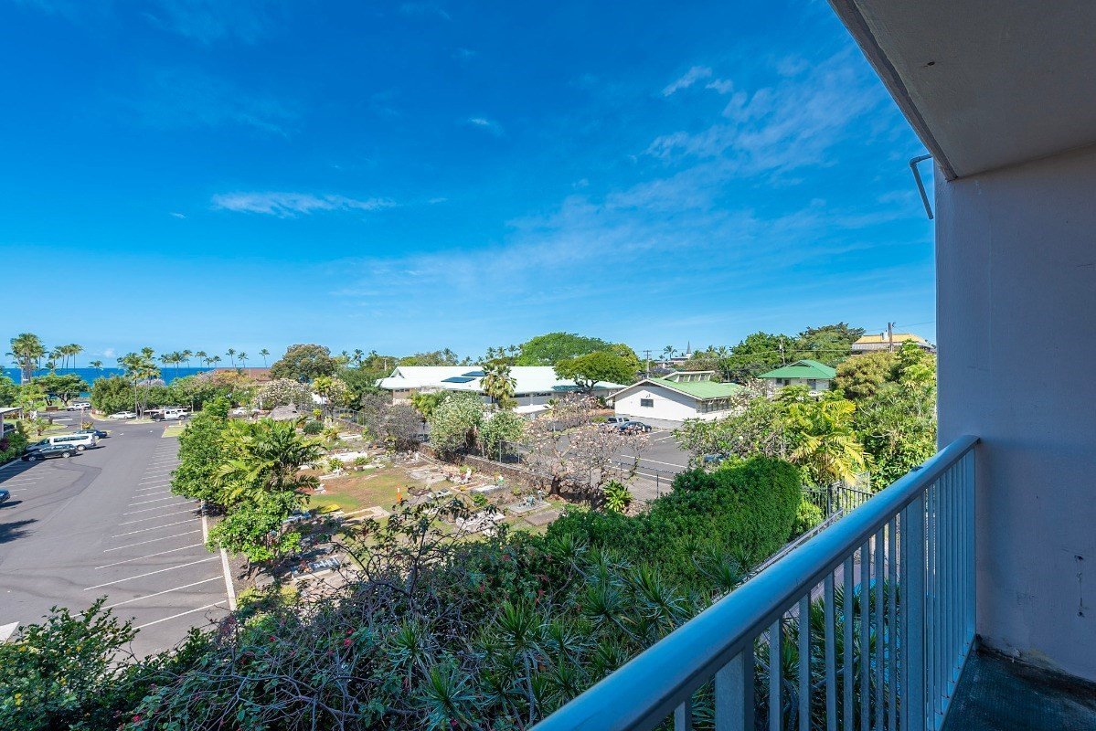 Third-floor condo at the mid-rise Kailua Village in the core of Kailua Kona with awesome views of the ocean and sunsets from your living room, lanai and bedroom. Easy walking distance to shopping, dining and entertainment downtown, on Alii Drive and at the Coconut Grove Marketplace. Amenities include swimming pool, BBQ area, community laundry room, assigned parking and storage area. On-site manager. Convenient, secure access with keyed elevators. Small pets are allowed with board approval.