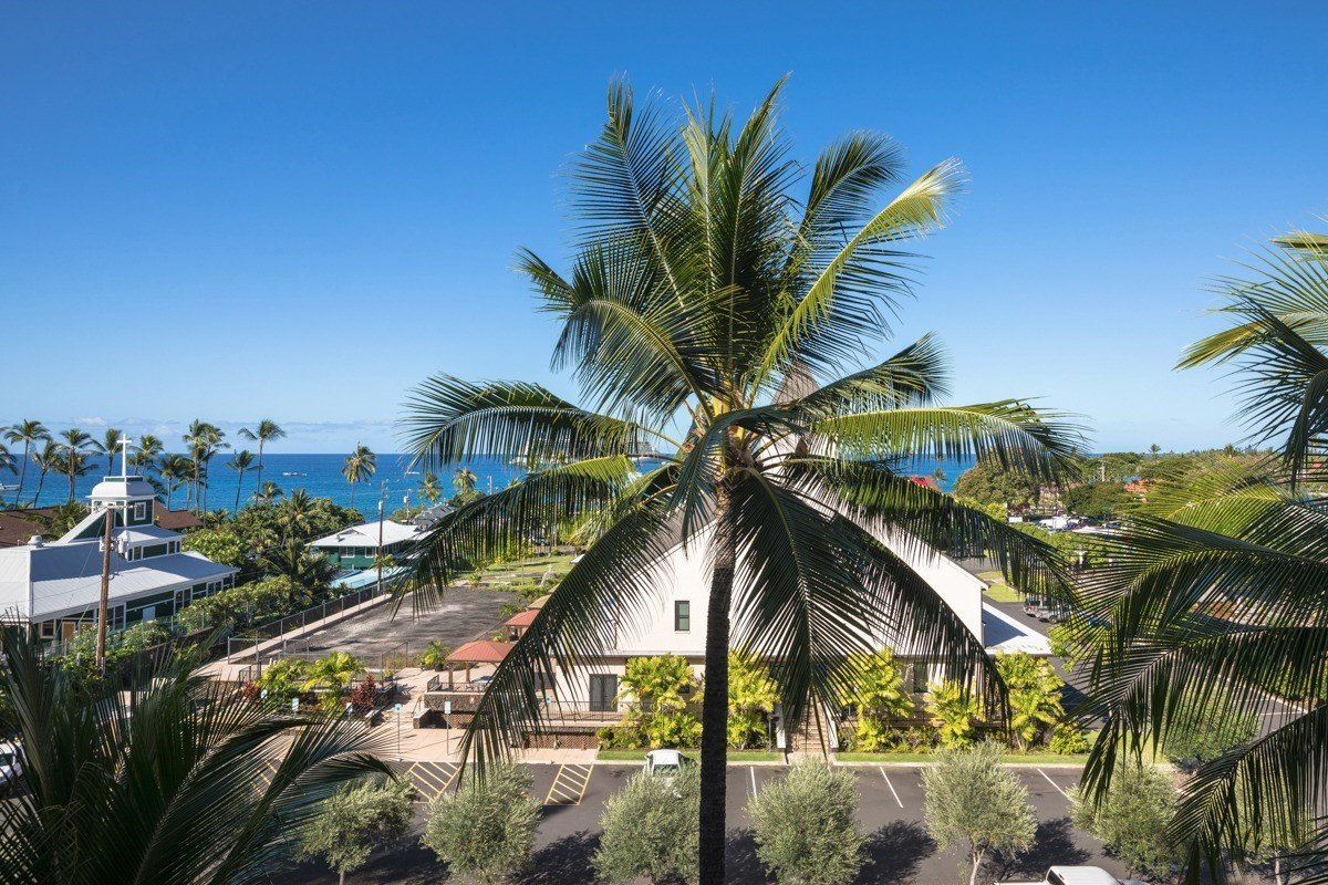 The complex is home to many successful vacation rentals. St. Michael's church is in front of this building and just beyond the church lies Alii Drive, the ocean and everything downtown Kona is known for.