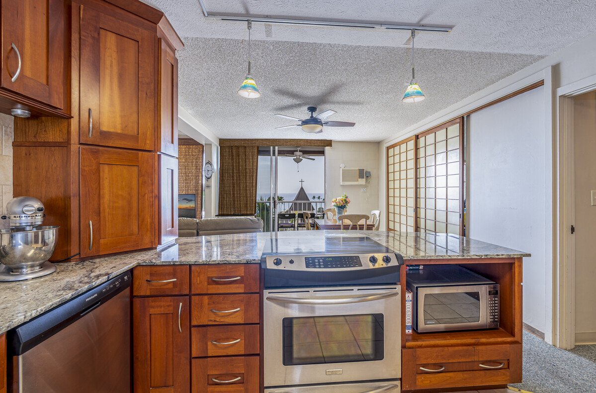 Very Special Rare Penthouse 1278 q ft. Kailua Village, sweeping views of ocean, sunset and village. Plus 117 sq ft covered lanais.STVR approved 7 story condo, with pool deeded parking. 2B /2B with two separate entrances and two lanais( possible to live in one side, rent the other side) Fully Furnished recently updated, beautiful large granite and cherry kitchen.Walking distance to beaches, restaurants, shopping,and banking. On site property manager, fully secured lobby with keyed elevators, manned office on first floor. 64 Units in building, Apply for additional storage closet on property. Community laundry.Perfect for full time residence, part time or STVR. 23% of building are full time occupants.New roof on building 12 years ago. Wall units for AC. Interior fully painted 2 years ago. Sun shades on covered lanai. Only 4 penthouses in this building! This wont last long. Bring offers.