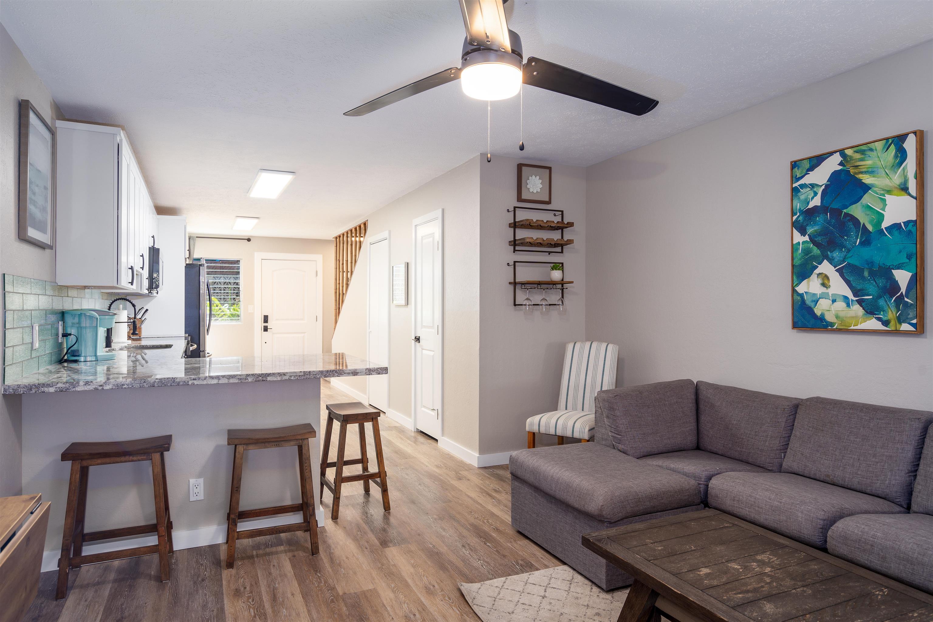 Welcome to this little piece of paradise - located within walking distance to the beach! Whether you're in the mood for a morning surf or sunset cocktails, everything you need is within walking distance. Perfectly situated near Wailea and all your favorite Kihei spots. This property is laid out like a townhome with an expanded living space on the main floor and 2 bedrooms upstairs. The primary bedroom has a King size bed and ample closet space with a barn door accent. The second bedroom boasts two queen sized beds and two oversized closets. There is a full tub/shower combo upstairs and a second, half bathroom on the main floor. The kitchen has been upgraded with high-end finishes and features providing everything you need to cook a family meal. Black stainless steel appliances, white shaker cabinets and custom tile backsplash with granite countertops. Available fully furnished! All comments, data is provided by seller or seller's representatives. Buyer to confirm all & hold all parties harmless from any discrepancy data in the mls and advertising. Limited Service–Data Entry Addendum signed by seller/s must be signed by buyer/s with Purchase Contract.