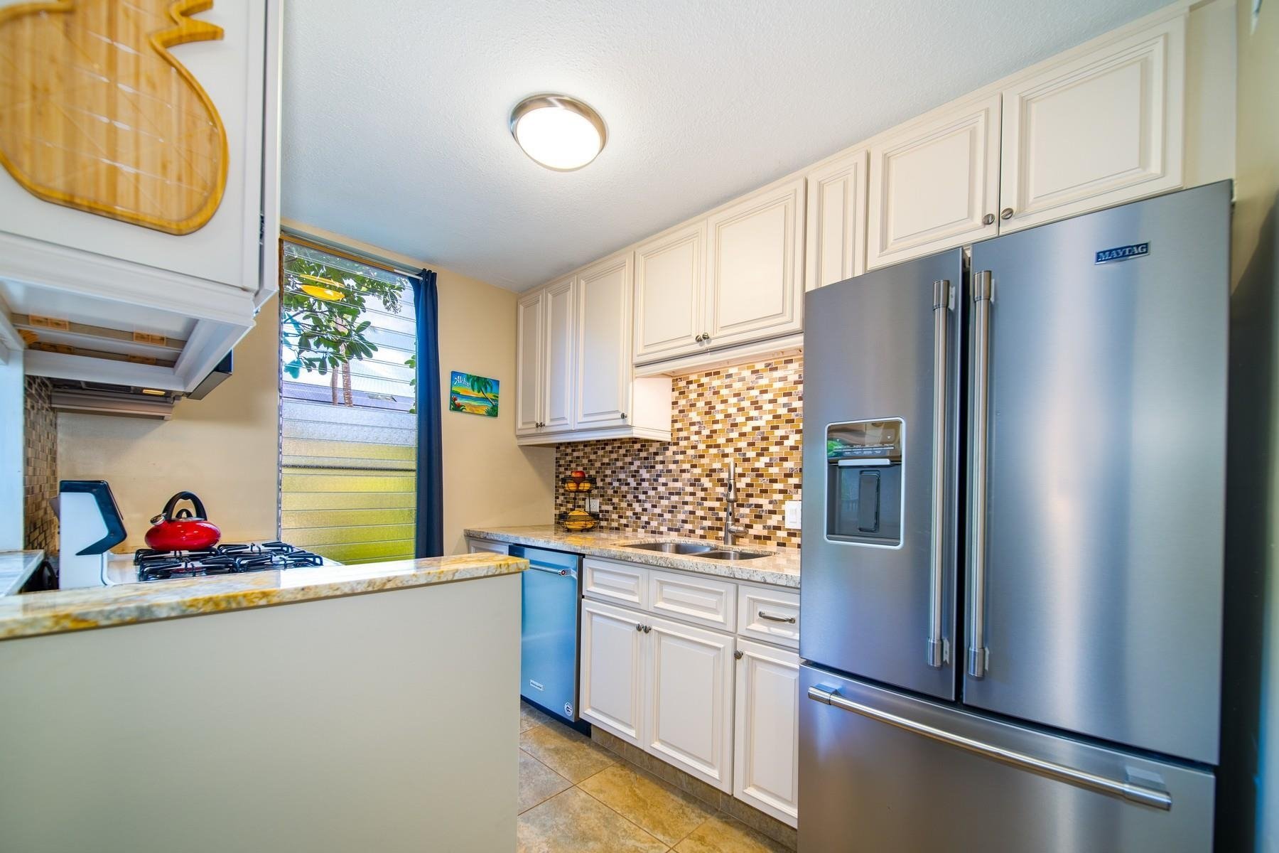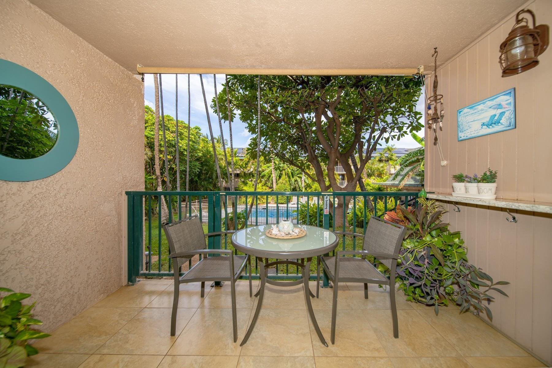 Welcome to Kalama Terrace P106, a stylishly updated, fully furnished vacation-rentable condominium in the heart of Kihei, yet seemingly away from it all. The ground-level unit is conveniently located steps away from the resort-style pool and outdoor barbecue area. The interior shows absolute pride-in-ownership, with top-of-the-line furniture, including King-size gel cooling mattress, 60” Samsung smart tv, new Maytag refrigerator, a top-performing Frigidaire air conditioning unit and much more. The large open floor plan seamlessly integrates indoor/outdoor living, the spacious lanai expanding naturally with the well-manicured tropical grounds. Within walking distance, find a plethora of shopping and dining opportunities, as well as some of Hawaii’s most critically acclaimed beaches. Priced to sell in the highly competitive one-bedroom vacation-rentable micro market, this unit will not last - contact your favorite Realtor for a private showing today.