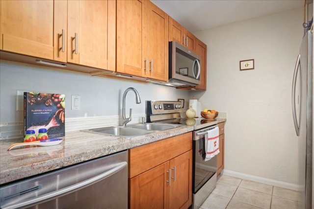 Great location, right in the heart of Historic Kailua Kona Village! Within walking distance to shops, beaches, dining, and more. Recently updated condo with garden and peekaboo ocean views. Full kitchen and bath renovation with new soft close wood cabinets, popcorn ceilings removed, tub shower with tile. Granite countertops and newer stainless steel appliances. Tiled floor throughout condo. Remodeled bathroom with tumbled rock flooring and tiled backsplash. Newer, full-load stacked washer and dryer. HOA's fees includes all utilities except for TV. This includes water, trash, common area maintenance, etc. Electric bill is much lower due to PV system, and billed through your dues. Wall AC units to keep the unit cool when needed! Relax on your back lanai to enjoy your early morning coffees, just to enjoy our beautiful sunset skies. Very close, large parking stall with easy access to your unit!Kalanikai is in a great location, close to major shopping stores such as Safeway, Walmart, and Target. Also within walking distance of oceanfront dining, shops, beaches, and Kailua Pier. Enjoy all sorts of activities, such as outrigger canoe paddling, snorkeling, manta ray dives, Glass Bottom Boat tours, and more!