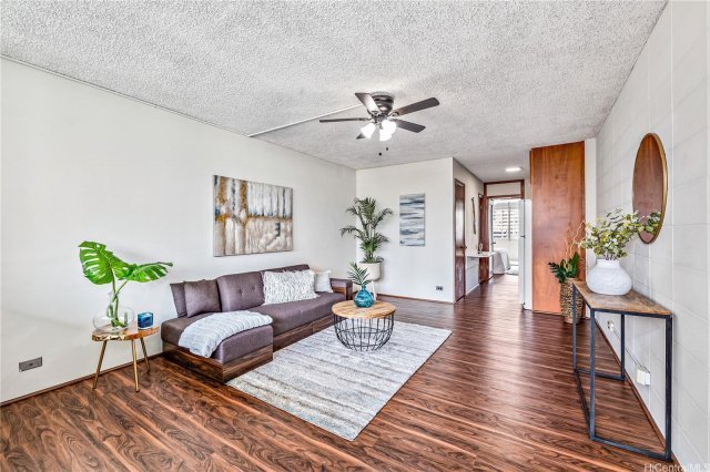 Beautiful, "high floor," in Waikiki’s charming, Mid-Century Modern, gated community! As soon as you enter the lovely grounds, you’ll feel a sense of peace and tranquility surrounded by lush, manicured gardens, swaying palm trees and architecture reminiscent of old Hawaii. The zen-like atmosphere extends to the unit with its open floor plan, expansive windows and cool tradewinds that gently flow through the unit. Renovated in 2021 to include NEW kitchen cabinets, granite countertops, stainless steel range/oven, modern ceiling light fixture, new hardwood like vinyl flooring throughout living room/bedroom, (2) new ceiling fans and freshly painted. Ample storage to include a built-in dresser in bedroom. Resort Amenities including, salt water heated pool, BBQ area, open air lobby, rec deck, rooftop sun deck, library, site manager, security. Walk to the beach, Hilton Hawaiian Village, Ala Moana Shopping Center, restaurants, surf, sun and all of Waikiki!