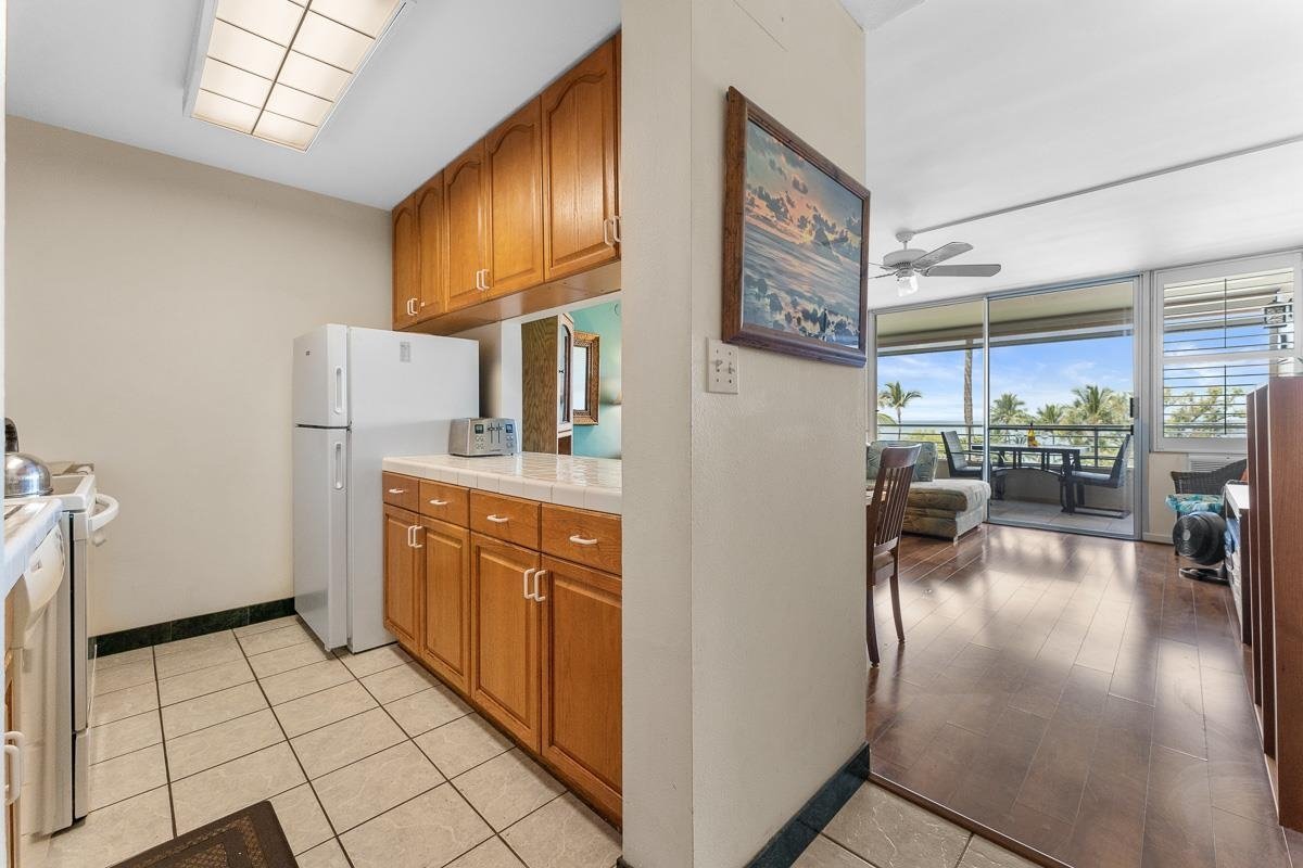 Guests rave about the million dollar plus views from this 5th floor Kamaole Beach Royale. Across from Kamaole Beach Park 1 in South Kihei and set back from South Kihei Road, unit 511 is a two bedroom, two bathroom condominium. The large lanai off the living area is where you will want to spend your time, enjoying our breezy trade winds, listening to the waves, and gazing at the Pacific Ocean, Kaho' olawe, Molokini, West Maui, and Lanai - not to mention the whale watching in season and the people watching year round. A combination of "urban sleek" with mother of pearl inlay In the two bathrooms and kitchen, and Hawaiiana colors and plantation shutters, creates a special ambience that is all Maui. Furnishings are included. Kamaole Beach Royale is zoned H-2: short term rentals are permitted. Fully equipped for guests, the unit has a lock off feature and is currently in a vacation rental program. There is one unassigned parking stall and a small owners' storage unit (approximately 3' x5' ) on the ground floor. With the Klhei Beach Club condominium complex intervening between South Kihei Road and the Kamaole Beach Royale, and the 5th floor location, unit 511 is quiet and private while still being right in the Kihei Beach scene. Popular beach venues are steps away, and you can walk to the beach, stroll to nearby stores and restaurants, and try out the surfing at Kalama Park. The Wailea Resort is Just 10 minutes away by car or by bus. Or, if you prefer self-service closer to home, there is an attractive 7th floor penthouse open air garden with two professional BBQs open to owners and guests, where you can take in the Haleakala sunrise, gorgeous sunsets, and moonrise and fireworks at night.