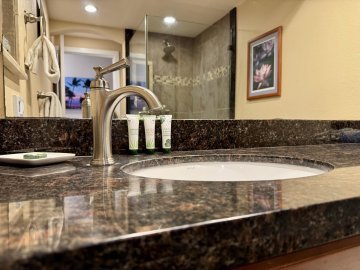 Kamaole Sands Residence 10-103 is a one-bedroom, two-bathroom ground-floor vacation rental condominium located in one of the most desirable locations in the complex. Residence 10-103 boasts the largest covered lanai Kamaole Sands has to offer. Oriented Northwest, this property takes full advantage of year-round sunsets, sun exposure, and West Maui Mountain views. Residence 10-103 features Stone/Tile walk-in showers, updated bathroom vanities and kitchen cabinets, quality appliances, ceramic tile flooring, AC in every room, and tasteful furnishings which are included in the purchase. Kamaole Sands sits on 15 acres of landscaped beauty and is located in South Kihei directly across the street from Kamaole III Beach Park. The sandy Kam III beach provides an excellent opportunity to snorkel and enjoy an abundance of aquatic sea life. Kamaole Sands also features elevators throughout all of the buildings. Minutes from Wailea and Makena. 5-mile radius from hundreds of restaurants and dozens of beaches. Amenities at Kamaole Sands include a large in-ground pool, two jacuzzies, keiki pool, three BBQ areas, recreation area, kayak/surfboard storage area, fitness center, and four tennis courts. This is a rare opportunity to own a dreamy primary residence, high income, producing investment property, or a rejuvenating second home getaway.