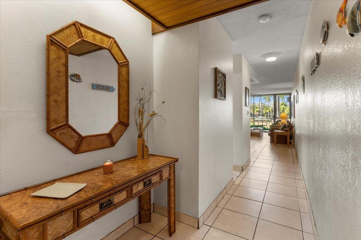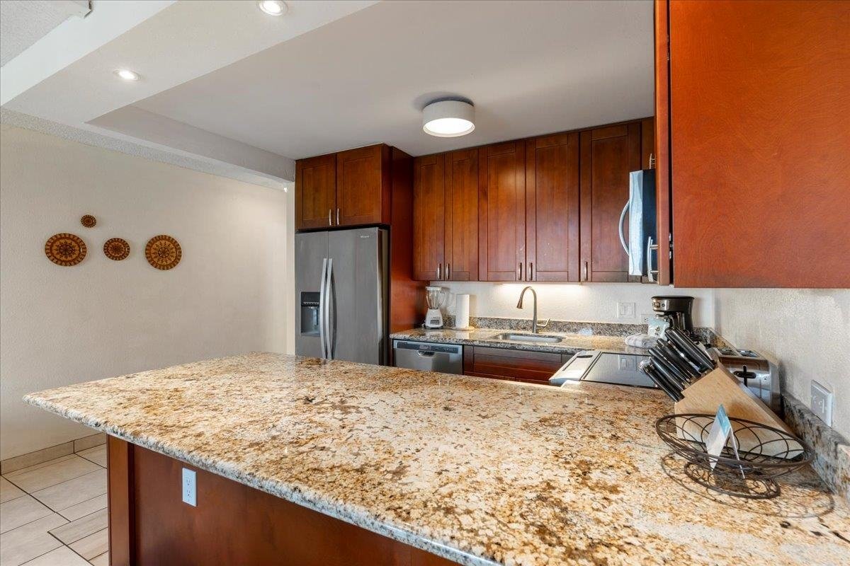 Bask in your breathtaking ocean views just moments to golden sandy beaches! Water lover's escape to your idyllic South Maui retreat, nestled front row at Kamaole Sands. Located on the first floor of the ideally-located Building 10, this condo is a literal stone's throw away to the legendary Kamaole III beach park. Enhancing the views of the Pacific Ocean, the soothing sights and sounds of the Kamaole Sands water fountains will transport you to a tranquil tropical paradise. The kitchen has been thoughtfully upgraded with stainless steel appliances, granite countertops, a breakfast bar, and custom all-wood soft-close cabinetry. In-unit laundry, air conditioning, and a dishwasher add comfort and convenience, enhancing the easy island lifestyle and making this turn-key condo both a successful and enjoyable short-term vacation rental. Enjoy the finest that Maui has to offer from swimming, snorkeling, paddle boarding, boogie boarding, sunbathing and more. Kamaole Sands offers an impressive array of resort-style amenities, including ocean views, tranquil waterfalls and ponds, a spacious family pool, a children's wading pool, two hot tubs, a fully equipped gym, and an entertainment pavilion with BBQ areas. Four tennis courts and beautifully maintained tropical grounds complete the experience — all in an unbeatable South Kihei location. You're just moments from world-class golf, acclaimed restaurants, the Kihei boat ramp, and the Shops at Wailea.