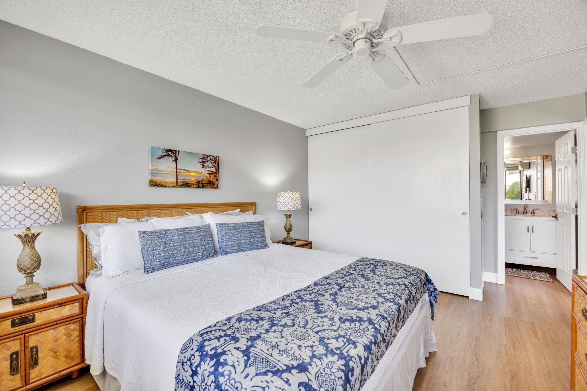 Stunning Vacation Condo – Your Island Paradise Awaits! This beautifully furnished 2-bedroom, 2-bathroom end-unit condo offers the perfect blend of comfort, style, and location. Ideally situated just across the street from the golden sands of Kamaole Beach Park III, you’ll enjoy breathtaking sunsets, whale watching in season, and easy access to one of South Maui’s most beloved beaches. Inside, the bright and spacious floor plan is enhanced by an additional side window, filling the open-concept living area with natural light. Features include luxury vinyl plank flooring, split A/C, and ocean views from your private lanai. The fully equipped kitchen is finished with rich mahogany cabinets and quartz countertops. Both bedrooms provide generous closet space and new mattresses, while the bathrooms have been tastefully remodeled with modern upgrades. Resort-style amenities complete the experience, including a swimming pool, hot tub, kids’ pool, tennis and pickleball courts, BBQ areas, a fitness center, onsite storage, and a conveniently located parking stall close to the unit. All special assessments have been paid in full and the work has been completed, giving you peace of mind. Whether you’re searching for a relaxing island home, a lucrative investment property, or a turnkey vacation rental, this condo is sold fully furnished and ready to enjoy.