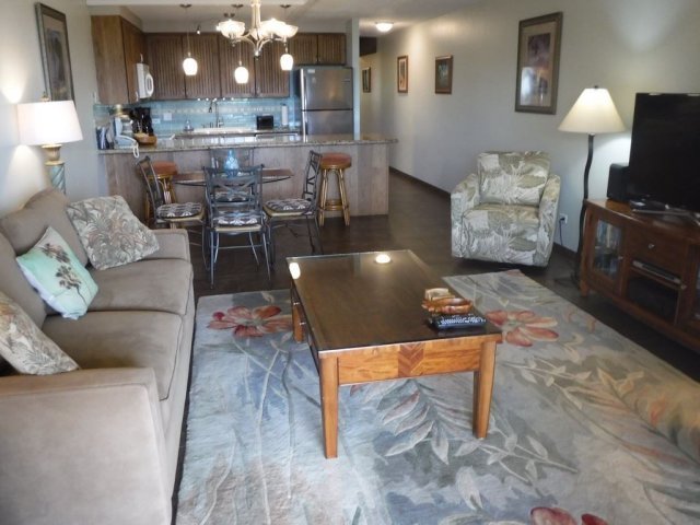 Delightfully charming South Maui condo with beautiful remodel. This large 1 bed/2 bath condo is vacation rentable and has the LARGE lanai! Upgrades include the kitchen with granite countertops, tile backsplash, hickory cabinets, soft close drawers, attractive tile flooring, beautiful stonework in the shower, modern lighting and newer, upgraded furnishings – not the typical Kam Sands rattan furniture! Quiet, state of the art a/c system, though unit has a nice cross breeze for the fresh air when desired. Living room has a queen sized sofa sleeper and large 50’ flat screen tv. Bedroom has a 32” tv but even better are the windows which have custom, hand made and one-of-a-kind black walnut and bamboo blinds and matching headboard for the king sized bed with individually spring-loaded slats for easy removal for cleaning or replacement. Baths have been upgraded as well. Fully equipped and turnkey, there is a washer and dryer in the unit. Vacation rentals allowed and this is currently rented through VRBO. Quiet location of building #4 yet still close to the pool, Jacuzzi's and other amenities which includes outdoor grills, tennis, fitness room, game area, main office. Unit comes with a dedicated parking stall as well. Complex was tented and painted in 2017. Call your favorite agent for a showing!