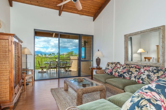 Kamaole Sands 4-408 is a top-floor 2BD/2BA condo offering stunning ocean & West Maui Mountain views. The large partially covered lanai is a perfect space to dine, relax or just take in the Maui sunset. 4-408 is an active vacation rental condo and is being sold turnkey, fully equipped to meet all your guests needs. The main living area offers soaring ceilings for a wonderful spacious feel, it has been updated with granite countertops, bamboo floors, and fresh paint. Additional updated include new bathroom tile and hot water heater. The upper primary bedroom offers beautiful bamboo floors and an en-suite bath. Another bonus is the great storage options including a storage closet on the lanai and a large lockout close on the second level. All Building 4 projects are complete , and this condo is ready to be enjoyed for years to come with a new metal roof. Guests can enjoy access to all amenities including 15 acres of tropical landscaping, a large resort-style pool, hot tub, kiddie pool, tennis courts, fitness room, BBQ picnic area, SUP/kayak storage, assigned parking, elevators, and a full-time registration desk. Kamaole Sands is conveniently located directly across from Kamaole Beach lll, this condo is great for beach walks, sunset views, whale watching, as well as enjoying the numerous restaurants, shops and golf courses that South Maui has to offer. One owner is a licensed Realtor in California.