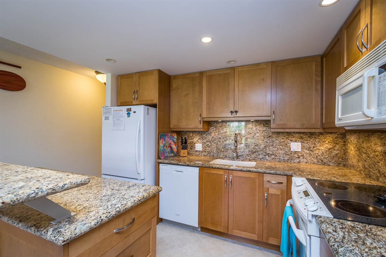 Located in Kamaole Sands, considered one of the best complexes in Kihei for location, amenities and the beautifully maintained grounds. This adorable and comfy unit has been updated throughout with granite counters, new kitchen, vanities in bath and much more. This unit is situated in the center courtyard which is one of the most desirable locations at Kamaole Sands. The unit is conveniently located near the BBQ and pool but just far enough away to enjoy the quiet splendor of the lush gardens. Take a quick stroll to some of the best dining on Maui or stay home and cook in this lovely remodeled kitchen while watching the sunset and a 'PEEK' of the ocean from your lanai. Kamaole Sands has long been one of the best income generating complexes on Maui, located across the street from a beautiful white sand beach, Kamaole III. This complex is decked out with many amenities: fitness center, picnic area, ping pong tables, tennis courts, BBQ area, pool with spa, kiddie pool, on 15 lush acres across from the beach.