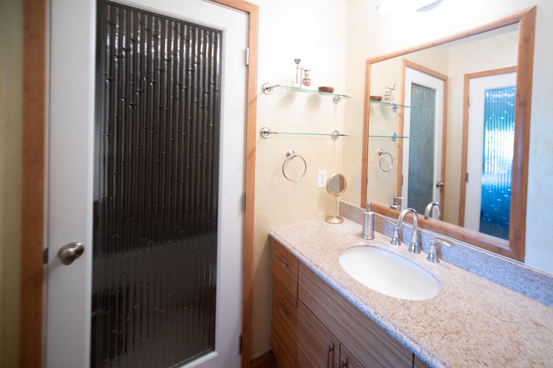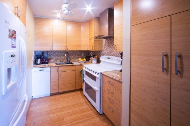 Very nicely updated unit with a great view of the Cove Beach Park! Beautiful top-floor condo boasts warm and airy high end remodel a short distance to beach, surf, shops and restaurants. Oceanviews from private lanai. Luxury upgrades include granite countertops, bamboo flooring, jetted soaking tub, and custom cabinetry and shelving. Includes en suite Bosch washer/dryer. No expense has been spared for your comfort! Low-density complex offers gated pool and storage area. Make your home, or home away from home, Kanoe Resort. You'll be glad you did.