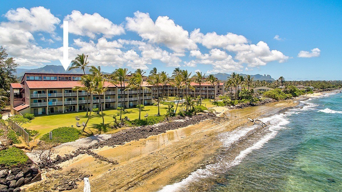 Top floor 2 bedroom/ 2 bath oceanfront condo on the beautiful Eastside of Kauai. Enjoy the glow of the sunrise, moonlit nights, and rainbows from your spacious unit and lanai.This unit features vaulted ceilings, has been fully remodeled, and is being sold fully furnished.Unit upgrades include: *tile flooring throughout *upgraded kitchen countertops and cabinets *stainless steel appliances which include refrigerator, stove, microwave, and toaster oven *upgraded light fixtures and fans throughout *interior paint with beautiful accent walls *upgraded wall art *upgraded bedding in the guest bedroom and master suite *upgraded countertop and cabinets in the guest bath *upgraded tile shower in the master bath *upgraded countertop and cabinets with dual sink in the master bath *upgraded mirrors in guest and master bath *bonus large owner's closet to store your personal itemsResort amenities include a beautiful pool and jacuzzi, shuffleboard, and a BBQ area. The property is within walking distance to dining, shopping, the Ke Ala Hele Makalae path.. a coastal path for walking, biking, jogging, etc.This unit is an Active Vacation Rental, and Buyer to honor existing reservations.