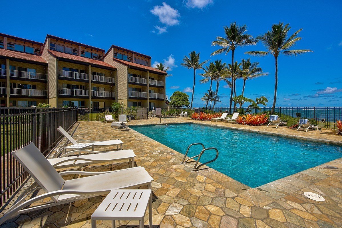 Kapaa Shore is a beachfront property in Kapaa that has residences within 50 yards of the ocean.