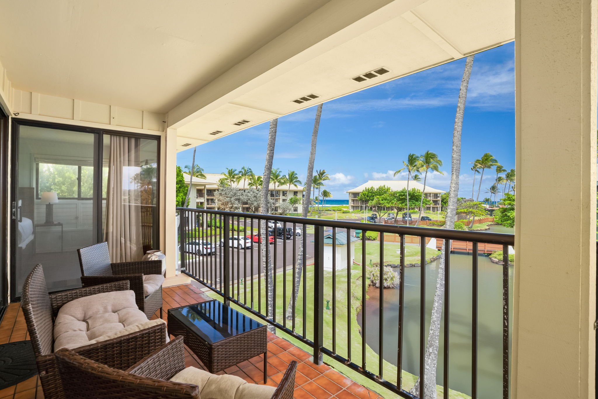 This charming 1-bed, 2-bath corner unit at Kauai Beach Villas offers partial ocean views, cooling trade winds, and the comfort of A/C when you need it. Sold fully furnished and turn-key, this unit is ready to continue its strong vacation rental performance—with consistently high occupancy and a loyal guest following.