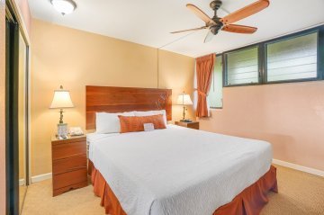 These one and two bedroom condos have interiors of 479 to 1,382 Sq Ft with one or two lanais exterior. Each unit has one assigned, uncovered parking stall to use. While all of the residences have ceiling fans, there are some that have also installed a split a/c system inside. The buildings do have elevators to serve the upper floors.