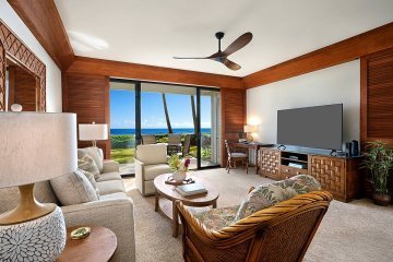 Parrish Kauai, who have a separate building that holds the front-desk, concierge and their offices. Owners can opt-in to their program if they choose. Almost every home here has an ocean view, most ranging from partial to, in the front four buildings, close to unobstructed.