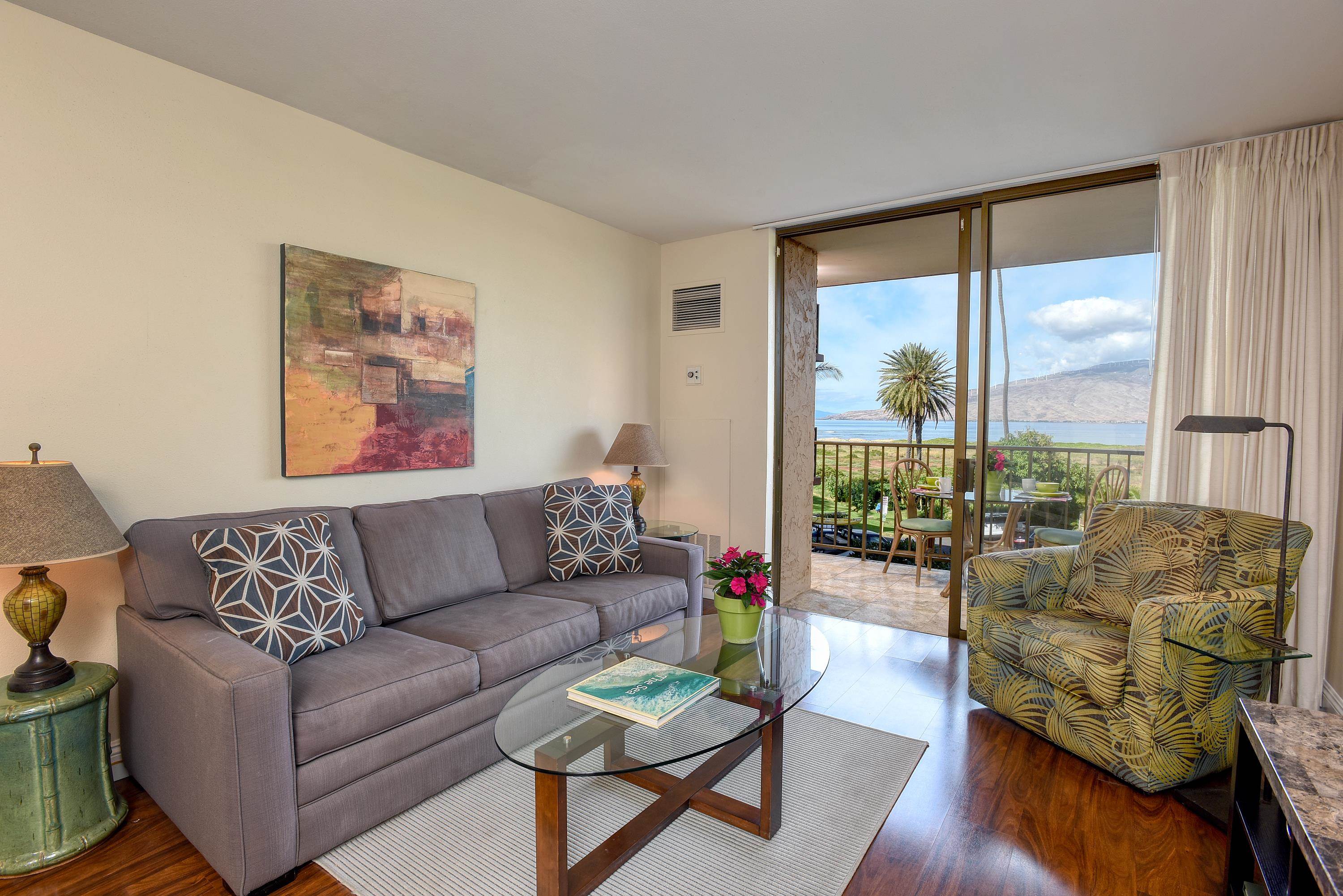 OCEANFRONT complex!. Beautiful 1 bedroom/1 bathroom apartment with wonderful ocean views from the living/dining area, kitchen and bedroom. The apartment has central air conditioning and is being offered fully furnished. Kauhale Makai is known for its amenities: swimming pool, spa, beach volleyball court, shuffleboard, and easy access to the beach. Located very close to pickle ball courts. Don’t miss this opportunity.