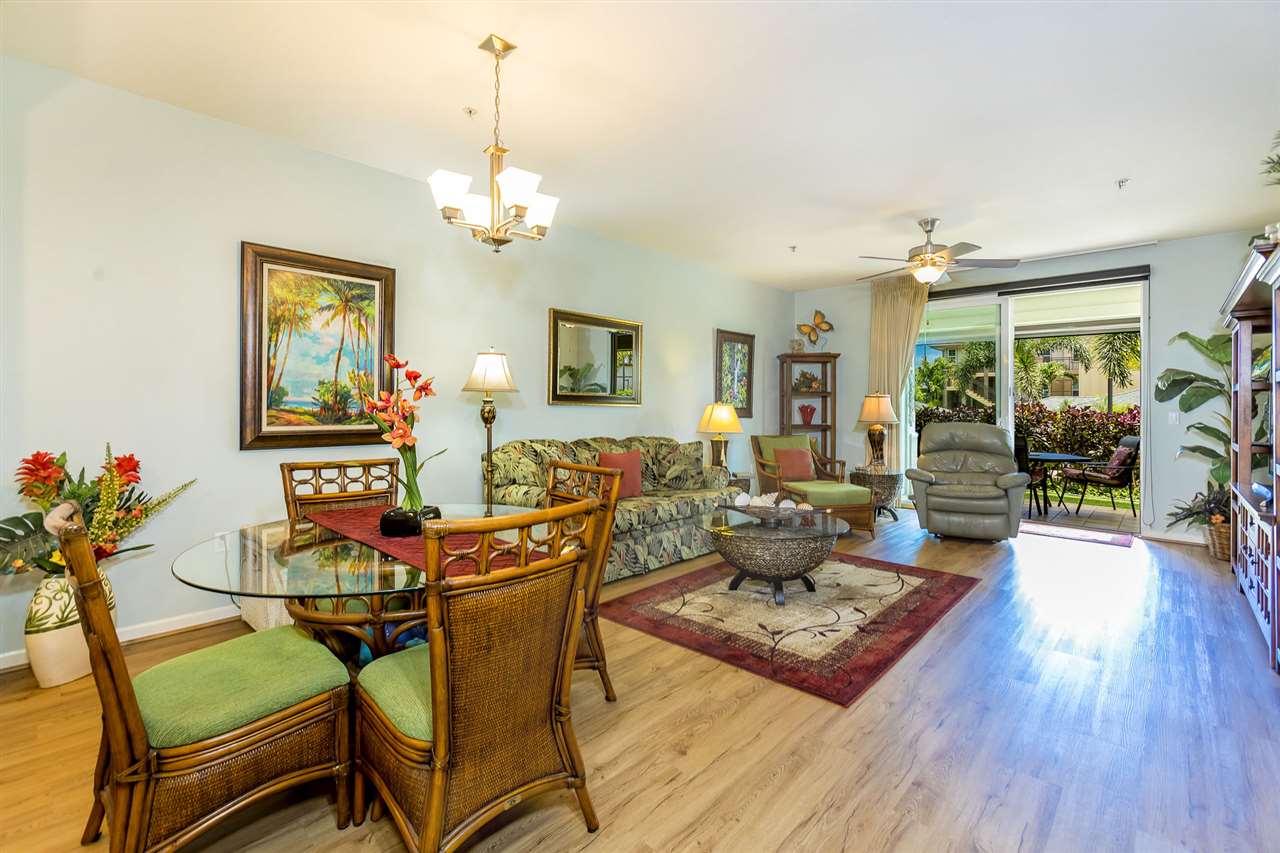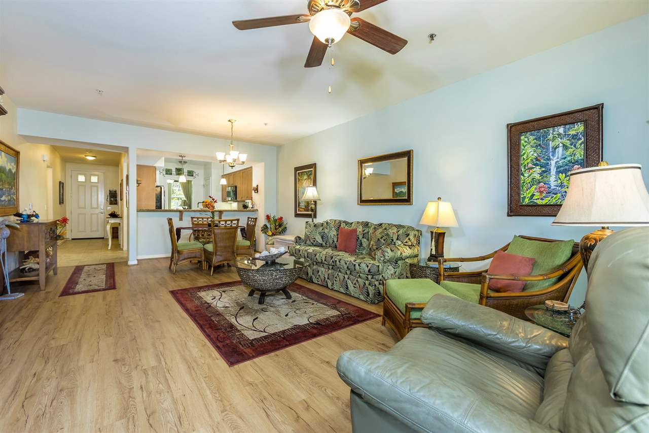 South Maui living at its best! Enjoy walking to the beach, restaurants and shopping from this spacious residential (1,375sf) ground floor condo. This two bedroom, two bath Driftwood floor plan boasts a 3rd room off of the kitchen that can be utilized as an office, guest room or...? The unit comes furnished with Mind's Eye interior furniture and decor. In June of 2019, "Lifeproof" Wood look, Rigid Core Laminate Flooring was professionally installed in the living and bedroom areas, with tile remaining in the entry, kitchen and baths. There are granite counter tops in the kitchen and bathrooms. This pet friendly complex has a yard directly in front of your Lanai as well as elevator access. Included is a one car, private garage with one additional assigned space as well as two storage closets on each end of your Lanai. Ke Alii Ocean Villas is one of the most desirable residential condo complexes in South Maui. Amenities include beautifully landscaped common areas, a 60' infinity edge pool, a community center with fitness room and BBQ areas. Elements of your monthly maintenance fee include: Water; Refuse; Sewer; Pest Control; Common Area Maintenance and Master Plan Insurance. Mahalo!