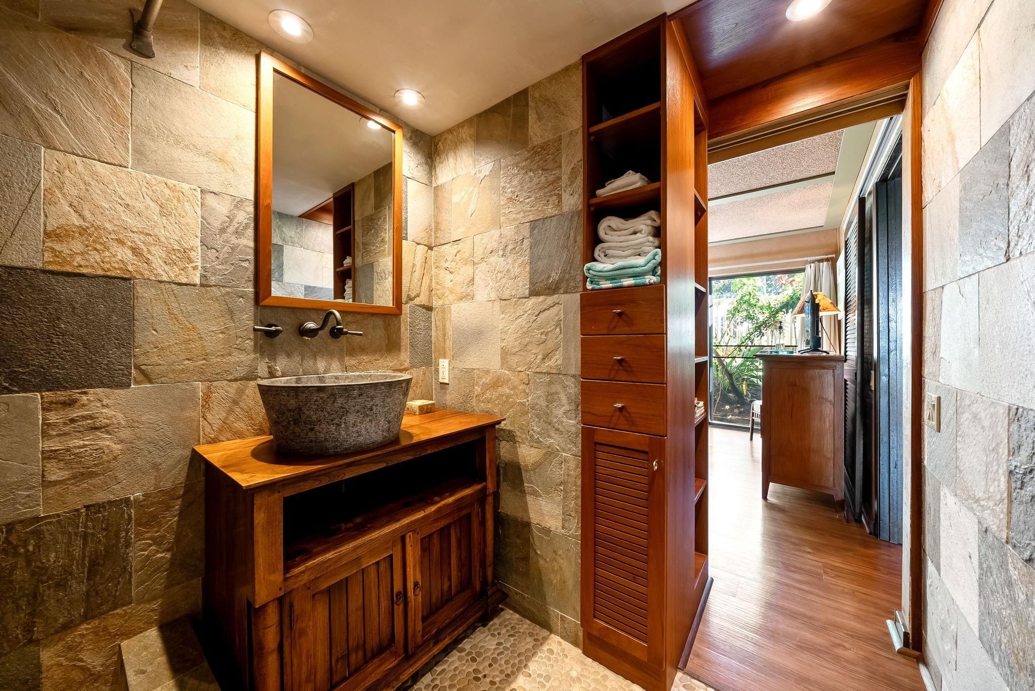 Welcome to the tranquility of Moloka`i. Secluded beaches are walkable from this romantic villa-like condo nestled in a quiet resort, surrounded by wilderness, wildlife, stunning beach and ocean views. Private bridgeway leads you to this garden level unit with lanais and sprawling green lawns. Textured plank flooring compliments timeless Venetian plaster walls and grass cloth ceilings. Custom kitchen with professional stainless-steel sink, new appliances, Norfolk pine counters and stained-glass solid teak cabinetry. Relax in a comfortable living room and dine inside or out. Two private bedroom suites, each with spa-like bathrooms, teak cabinetry, custom vanities, onyx pebble floors and brushed stone showers. Excellent rental history. Common area amenities include resort quality swimming pool and tennis garden. Furnishings are included.