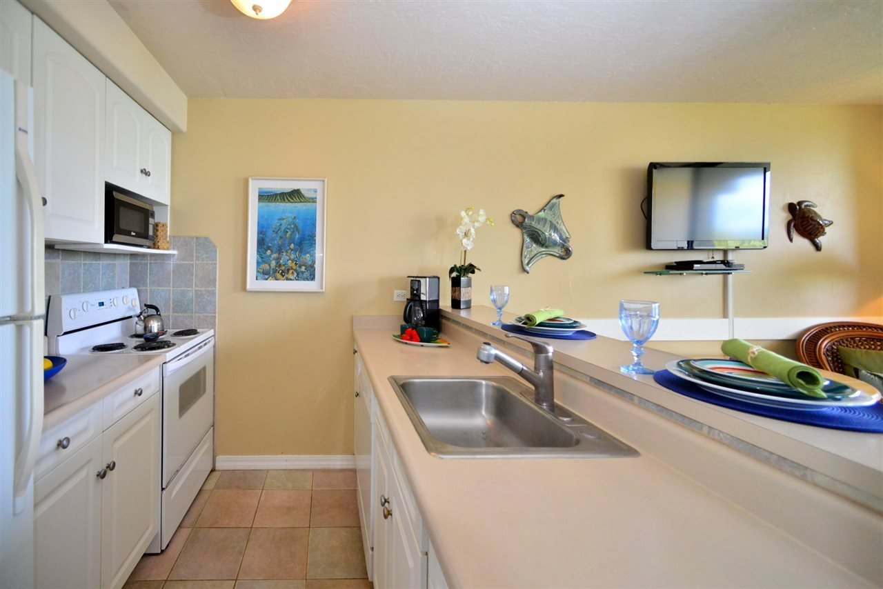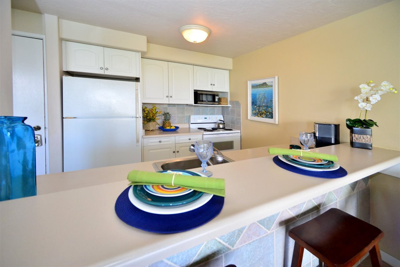 Amazing ocean and West Maui views from this top floor unit at Kealia Resort! Watch the whales frolic, outrigger canoe paddlers cruise by and enjoy spectacular sunsets from this popular vacation rental on Sugar Beach. Unit has been updated with tile floors open kitchen and freshly tiled bathroom. Kealia Resort is nestled on miles of sandy beach in South Maui and is centrally located to shopping and dining. 8 minutes to Wailea Resorts and Golf..