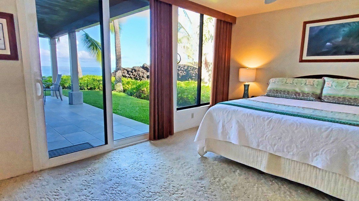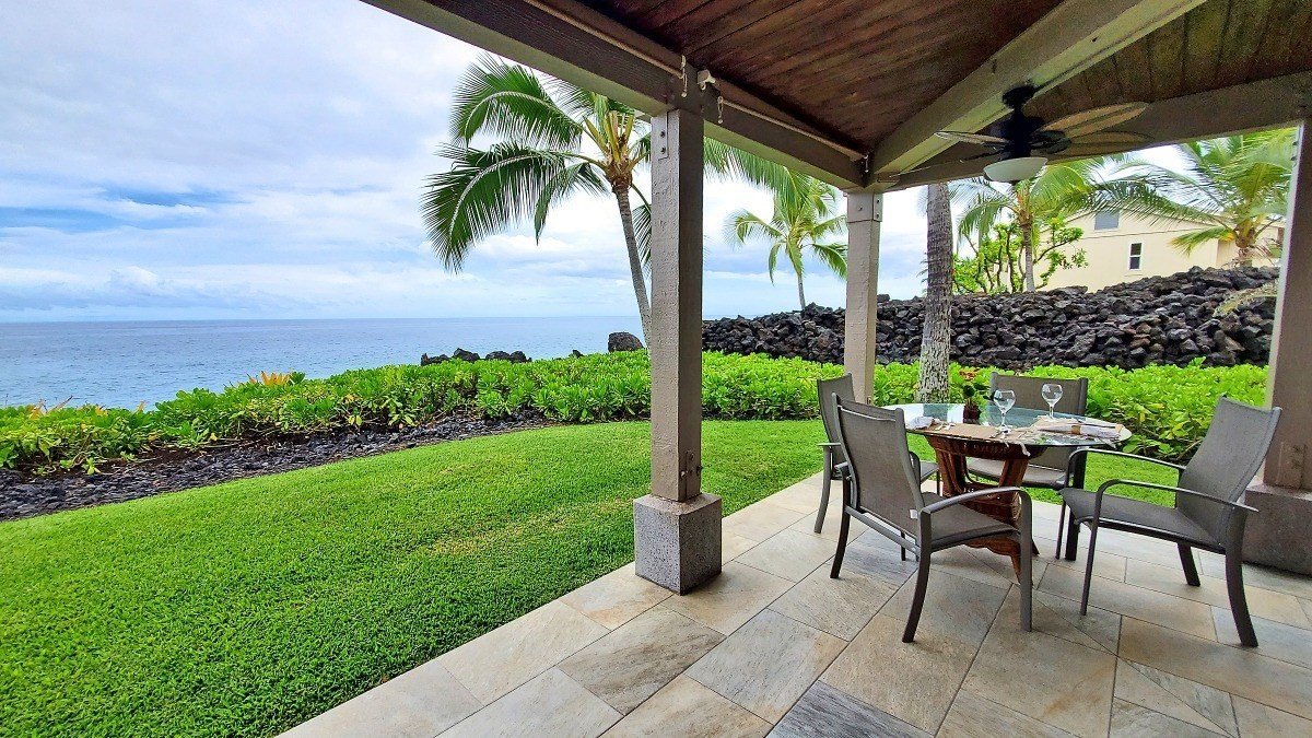Here it is! A fabulous 2BR/2BA oceanfront condo with a “no stairs” level entry. This corner unit has one of most private settings in the complex with views straight out to the ocean, protected by a lava rock buffer to the north. Watch the ocean waves, paddlers, and spouting whales in season without the distraction of looking into any other unit, or having anyone looking at you! The corner lanai, recently resurfaced in quartzite tile has an elevated view plane with surprisingly good views for a first-floor unit. The lanai wraps around the living room to the master bedroom and has plenty of space for outdoor living. The comfortable interior has an open floor plan, and of course, ocean views, views, views, from the kitchen, dining, living, and master bedroom. The spacious, fully functional kitchen has granite countertops, stainless steel appliances and enough cabinets and counter space to appeal to the family chef. The bathrooms have updated vanities with granite countertops and clean white tile showers. Custom woven-wood window treatments and attractive furniture provide a warm, relaxing ambience. The unit comes turnkey furnished and is a popular vacation rental with existing bookings and STVR registration. A dedicated parking stall is just steps to the front door... super convenient for bringing in your groceries, luggage, and beach toys. The ground floor location is wheelchair-friendly and is located close to the small shade pavilion, which is handy for barbecuing or just relaxing and talking story with your neighbors. HOA dues: $755 Maintenance Fee; $167 Reserves; $70 Cable TV; $43 Sewer Fee.