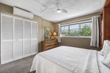 As you step inside, you’ll discover a light-filled living space adorned with island-inspired décor. The garden-view lanai invites you to relax, dine al fresco, or simply take in the lush greenery. The fully renovated kitchen provides all the essentials you need to whip up delicious meals during your stay.