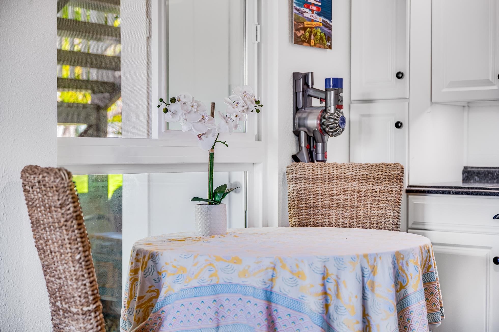 Welcome to this beautifully remodeled 2-bedroom, 1.5 bath ground-floor unit in highly sought-after Keonekai Villages--just moments from South Maui's best beaches! This move-in ready home features modern checkerboard tile flooring with a bold black and textured gray contrast, adding both style and durability. The open-concept living space is enhanced with new double-pane windows, sleek modern finishes, and convenient in-window air conditioning to keep things cool year-round. Both bathrooms have been tastefully remodeled, elevating the home's contemporary charm. Step outside to your private fenced yard, thoughtfully upgraded with slate tile flooring, creating a serene outdoor retreat perfect for relaxing or entertaining. Furnishings are included, making this an effortless turnkey opportunity. Additional perks include tandem two-parking for convenience and a pet-friendly community. Don't miss your chance to own a stylish, well-maintained unit in one of Kihei's most desirable locations!