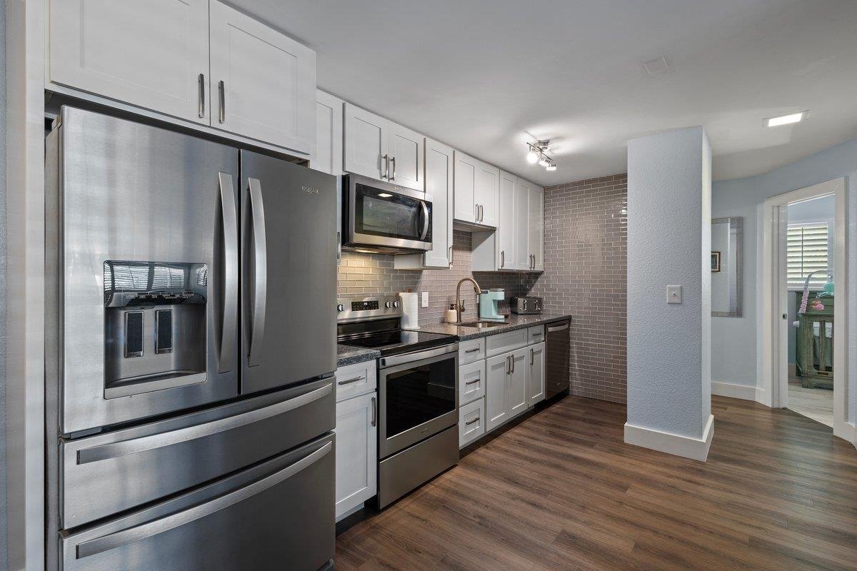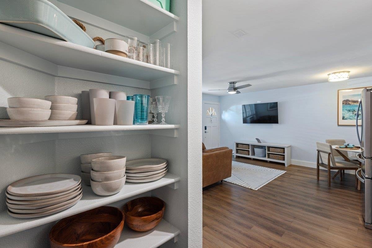 Look no further than this move-in ready, pet-friendly, tastefully furnished, pristine South Kihei condo. Updated features include newly upgraded kitchen, Whirlpool appliances, granite counter tops, and space saving Eco Smart tankless water heater. The open floor layout boasts luxury vinyl flooring throughout. New AC window unit, Ring video security doorbell, fingerprint/punch code entry, and 3 Smart TV's are included. This lovely corner end unit provides additional windows with custom made privacy plantation shutters. Freshly painted, with brand new furniture, this remodeled condo is a turnkey opportunity, and comes with two parking spaces. As of list date, this unit holds the lowest HOA fee for a 2 bedroom in South Maui. Located conveniently near Kihei’s best beaches, a variety of delicious cuisine, Keonekai “Dog” Park, and minutes away from Wailea’s world class shops, beaches, golf courses, and resorts. From this idyllic location, just grab your included beach chairs & wagon and head down to Kamaole III or Keawakapu to watch the sunset. Extremely easy to show! A 1-year home warranty will be gifted to buyer! Property is owned by licensed Hawaii Realtor.