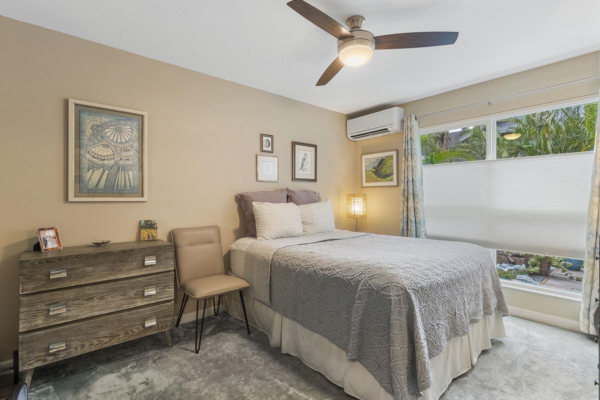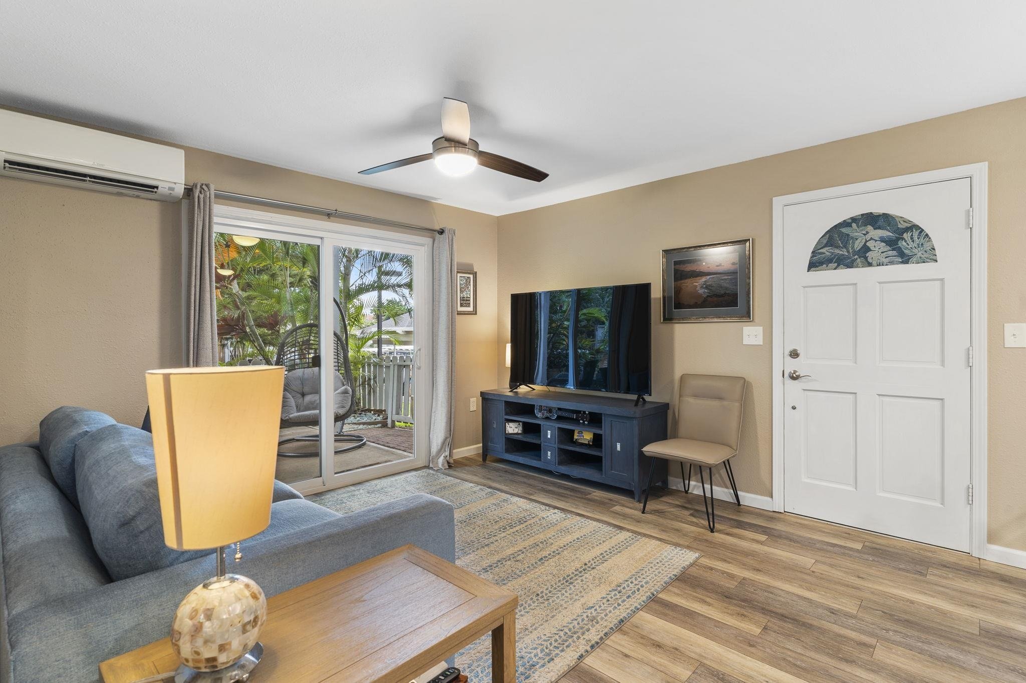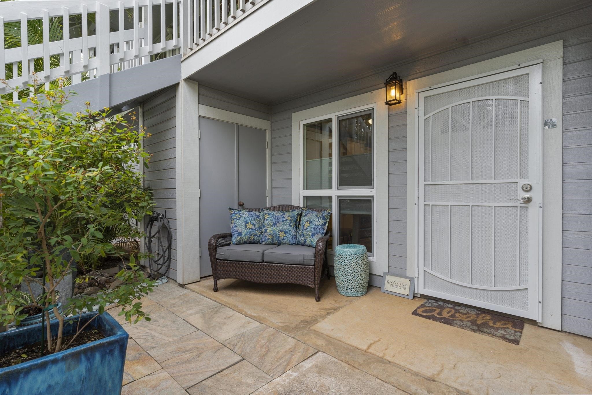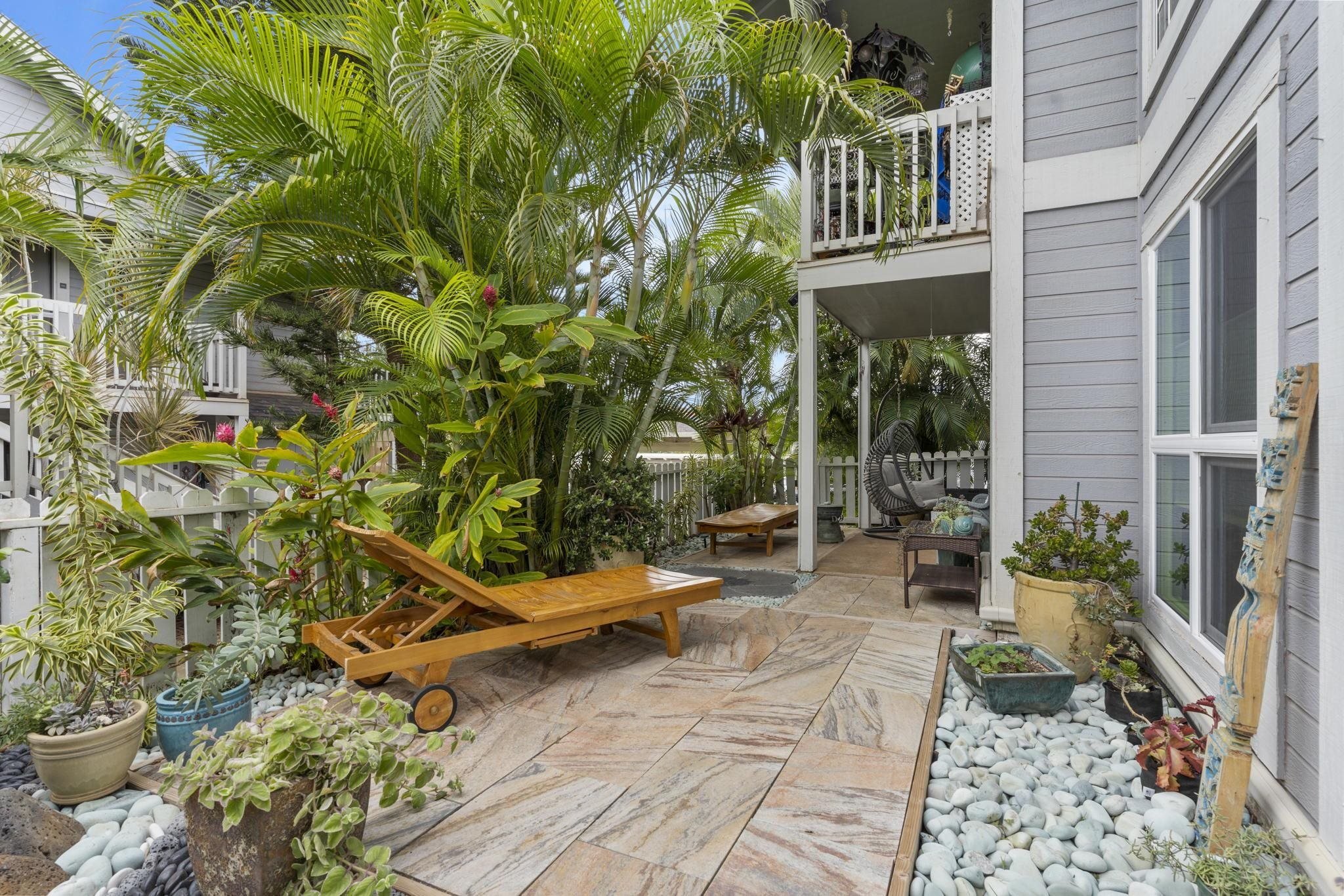 Turn-key, beautifully remodeled ground floor unit in highly sought after Keonekai Villages. Serene and tasteful interior includes: luxury vinyl flooring throughout, stunning and thoughtful kitchen remodel with extension into dining area with granite countertops and stainless steel appliances, all new lighting, fixtures, bath vanities, tile shower, baseboards, interior doors and paint. Split AC, all new windows and custom Bali top-down, bottom-up window coverings installed 2020/2021. Front and back yards are uniquely beautiful and one of a kind custom art pieces! Low maintenance yard is private and peaceful (faces interior with lush border). Keonekai Villages is a wonderful condo community near to Kamaole Beach parks 2&3, with low density buildings, great neighbors and dog-friendly (no weight limit). Tandem parking spaces 35 & 36. Listor is seller.
