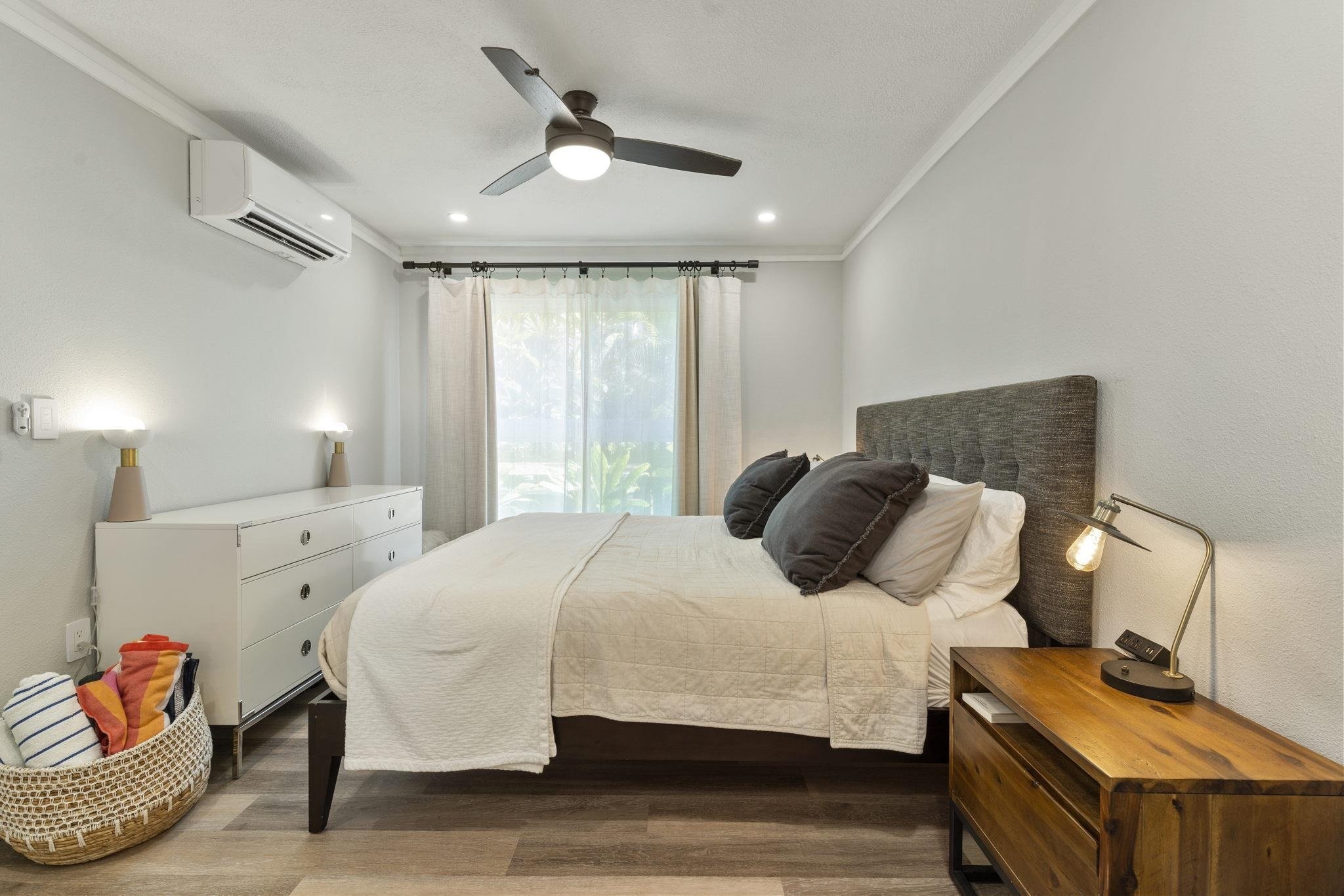 Get in on the ground floor, literally, of Keonekai Villages. This 2 bedroom, 1.5 bath unit has one of the most private locations in the back of the complex. Inside this beautifully upgraded unit, you'll find great features such as Milgard double-paned vinyl windows and sliders. Silestone quartz countertops in the kitchen are complemented by custom cabinetry and newer appliances. The bathrooms feature updated vanities, toilets, and a cast iron soaking tub. To keep the unit nice and cold, a new split air conditioning system was installed in 2021 along with brand new Metroflor Engage floors. Spend your evenings enjoying the spacious lanai that includes a HotSpring hot tub! Keonekai Villages is one of South Maui's most sought-after residential condo communities due to its proximity to the beach and its pet-friendly association policies. Come see for yourself why this could be the perfect condo for you.