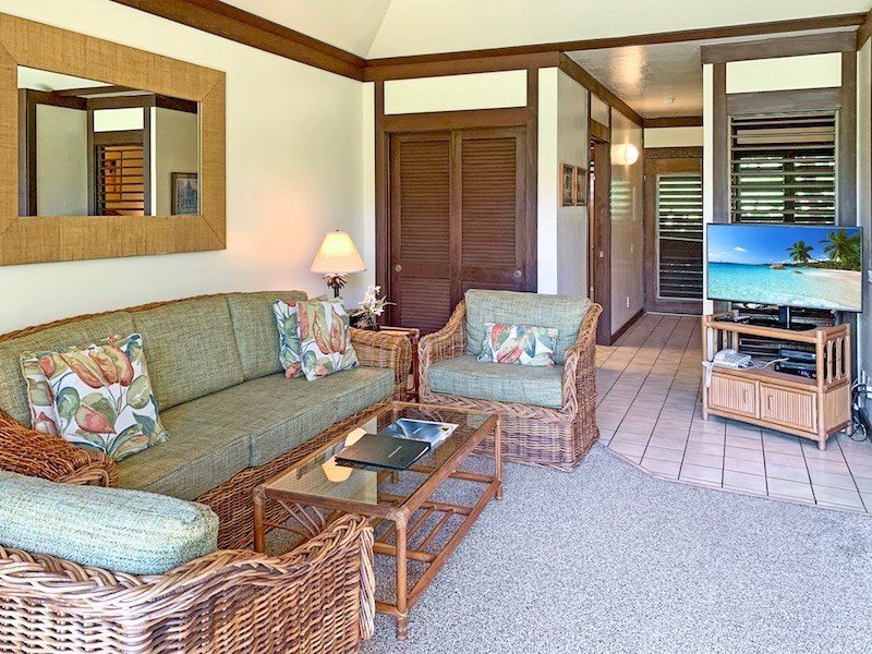 Kiahuna Plantation unit #56 is a lovely Royal Garden View 1 bedroom 1 bath perfectly situated within this 33 acre ocean front resort. You are just a short barefoot 2 minute walk to the beach that the Kiahuna is on. This is a true ground floor unit with no stair entry and the lanai is flush with the lawn. The owners have always felt the unit had a privacy factor to it and they taken excellent care of this condominium. They are selling it completely turn key.
